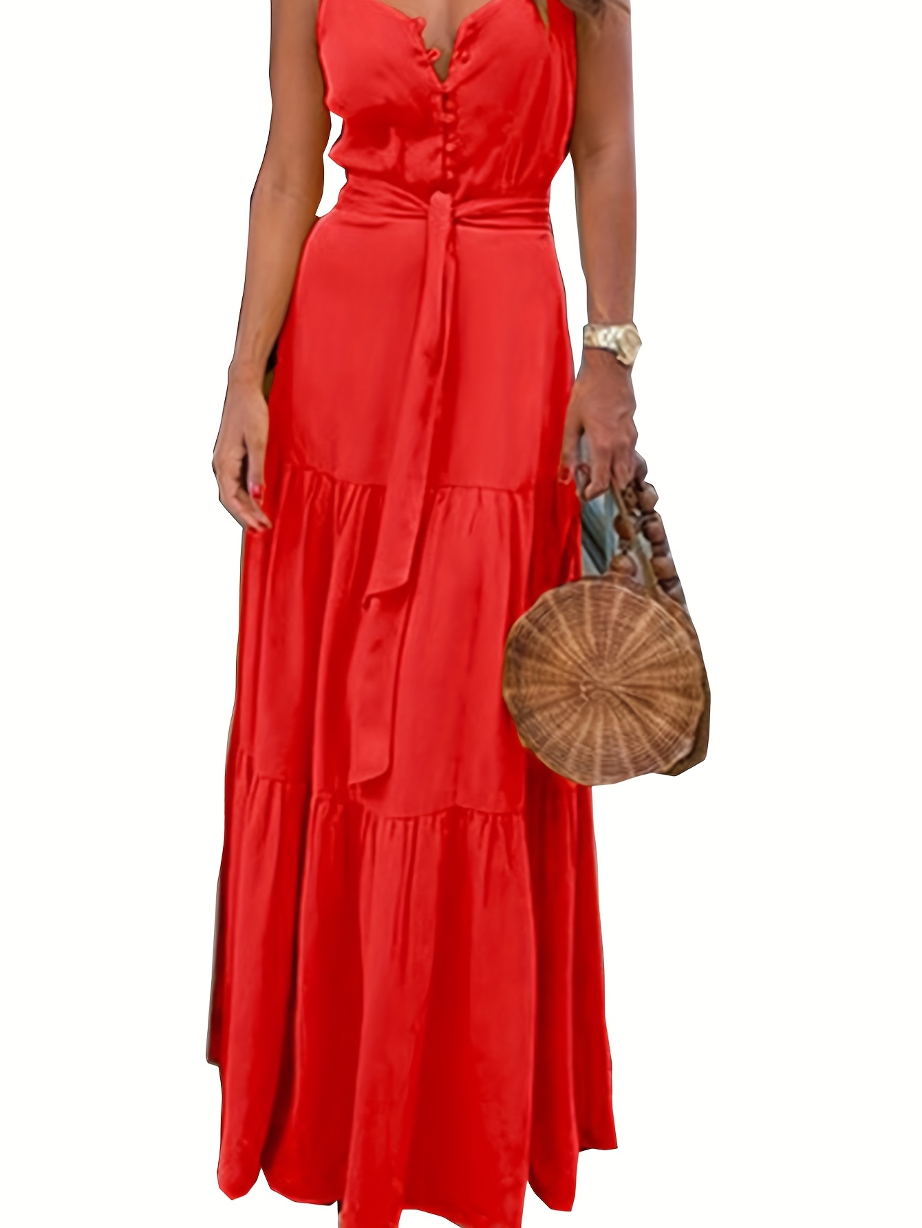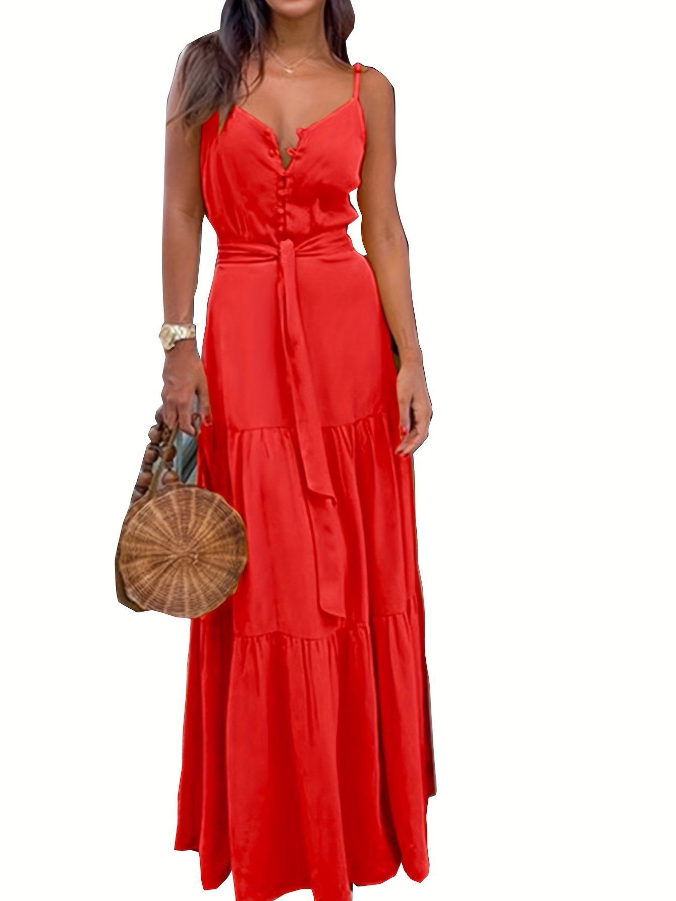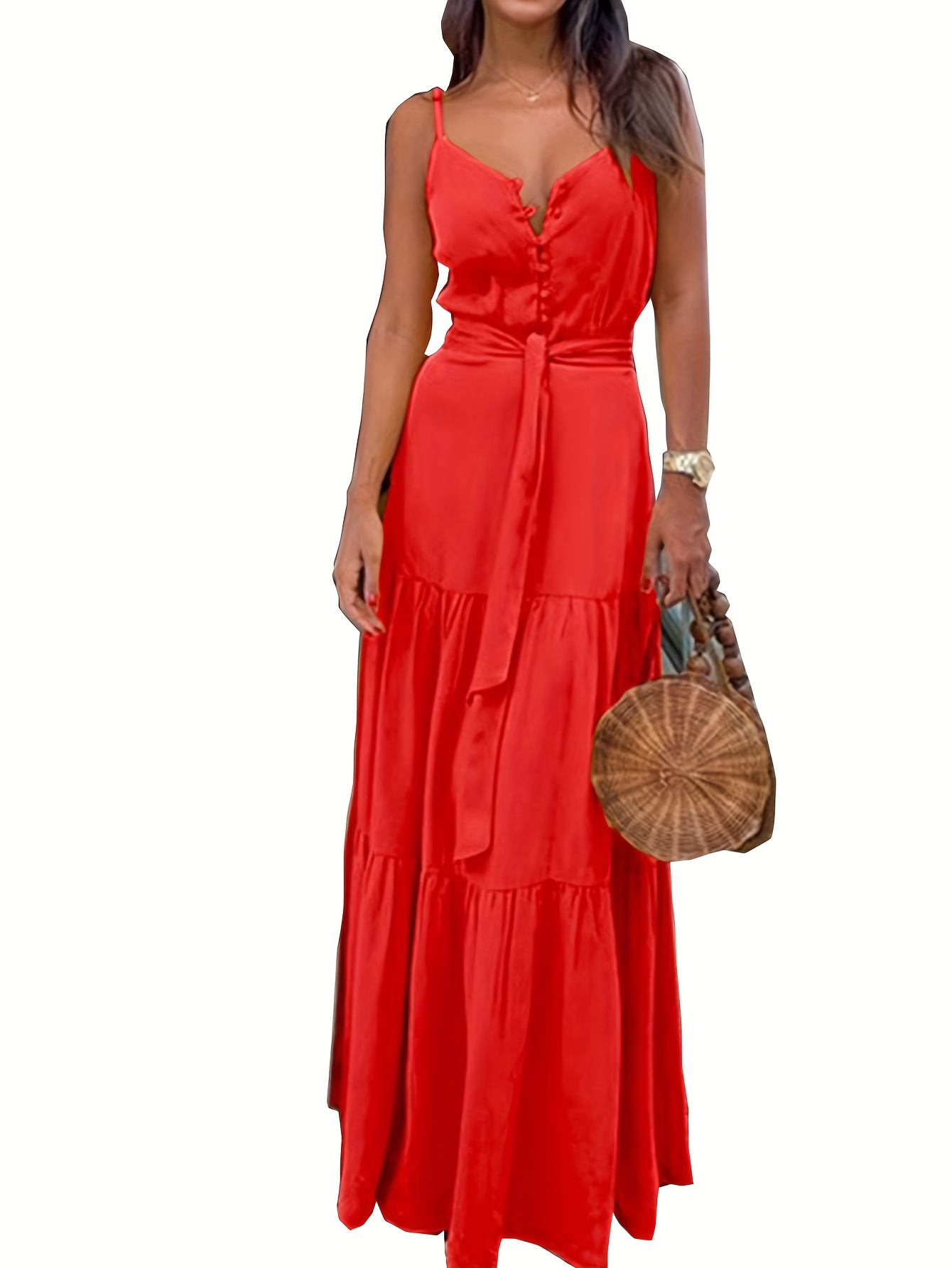 Casual Chic Sleeveless Floral Dress – Stunning V-Neck, Elastic Waistband for a Snug Fit, Delicate Ruffle Details, and Stylish Large Blooms for a Perfect Summer Ensemble