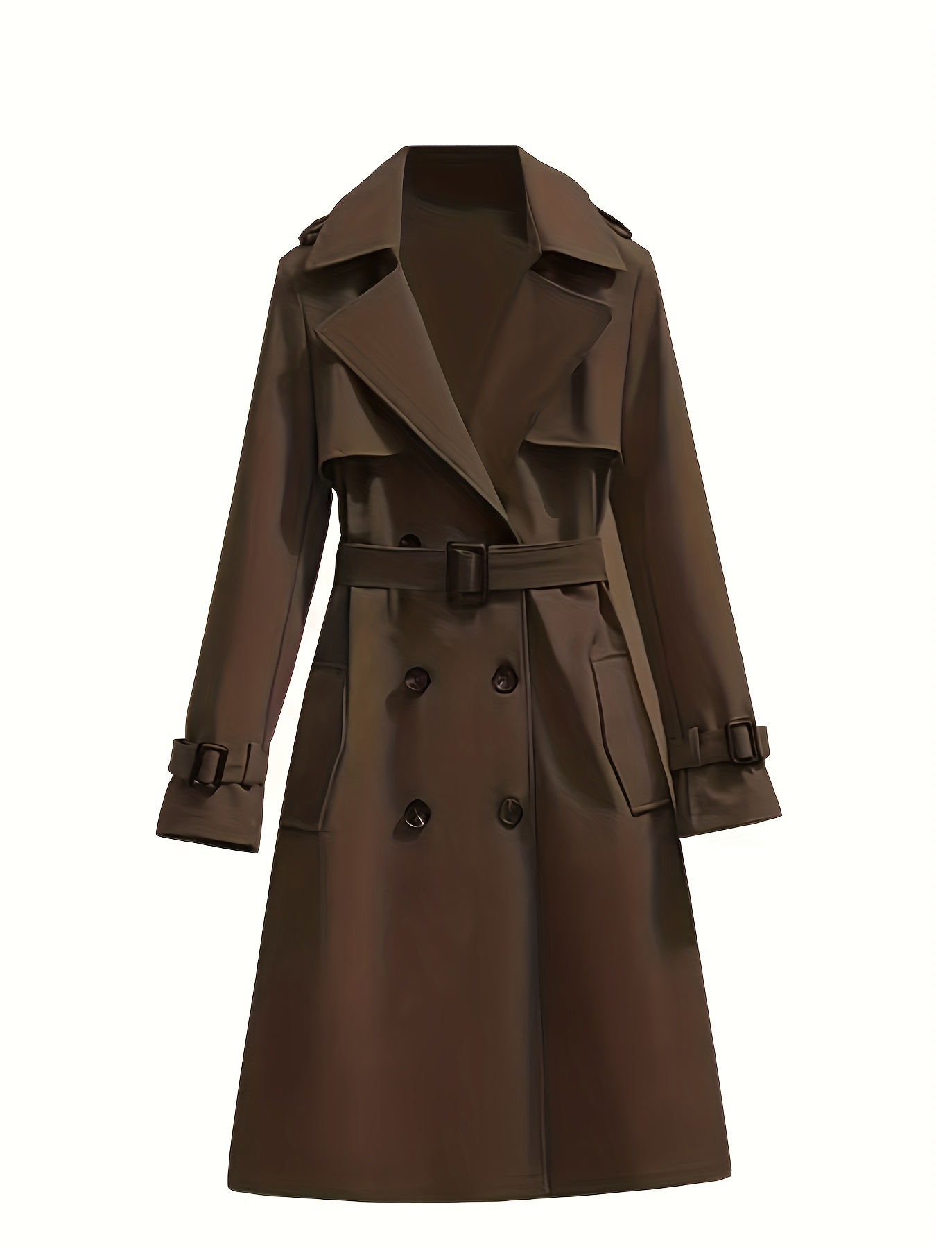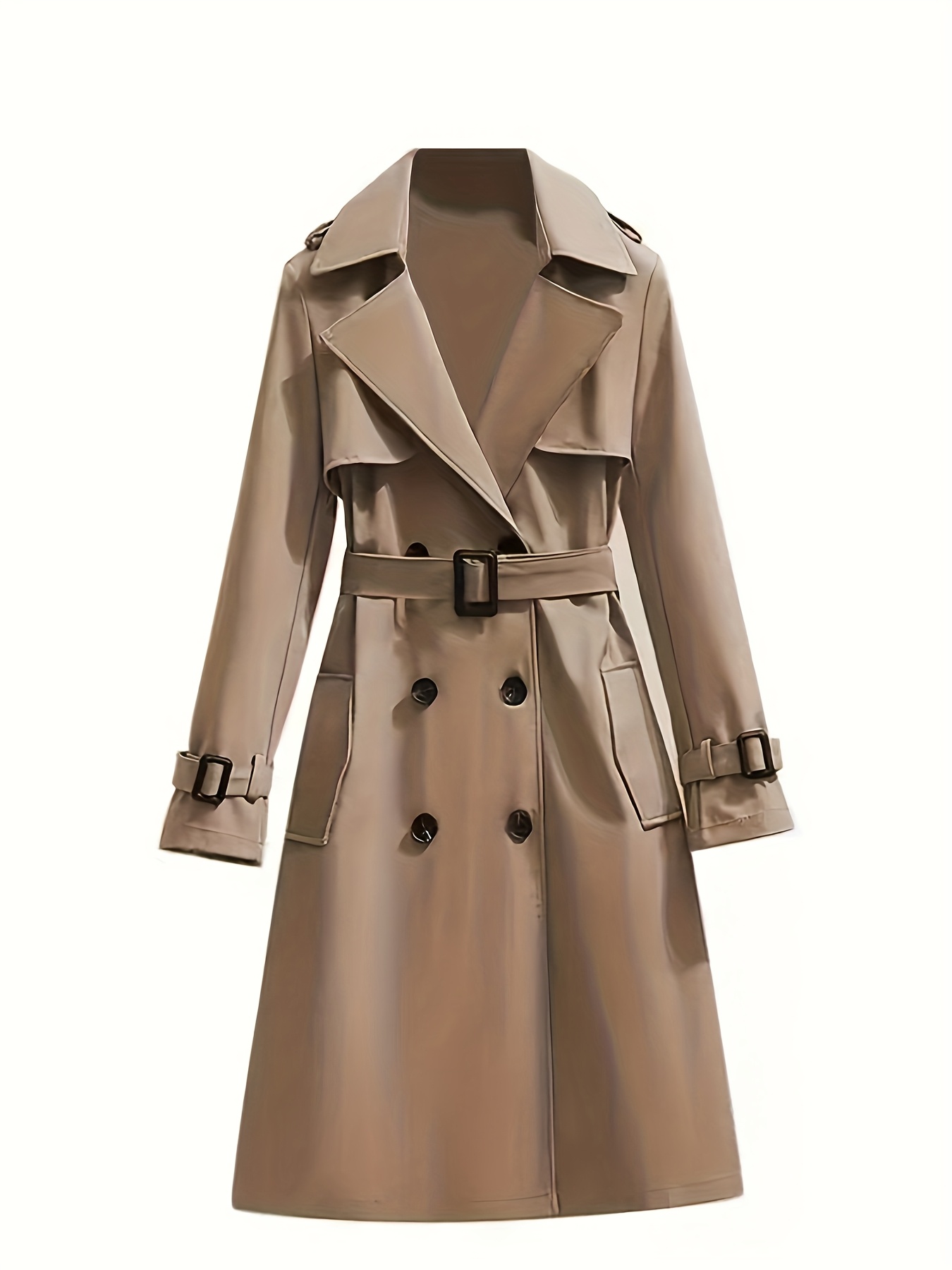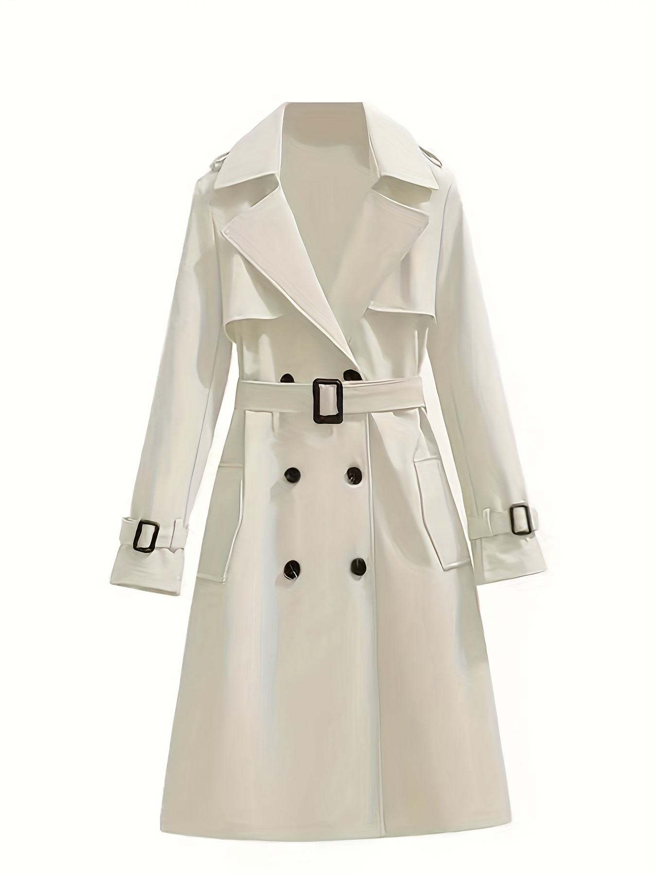 Elegant White Double-Breasted Trench Coat for Women – Long Sleeve, Belted Waist, Button-Up Design, Casual Style, Perfect for Fall & Winter, Casual Winter Wear | Belted Trench Coat | Structured Design