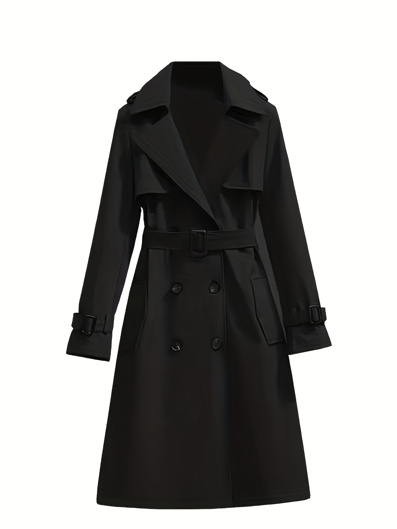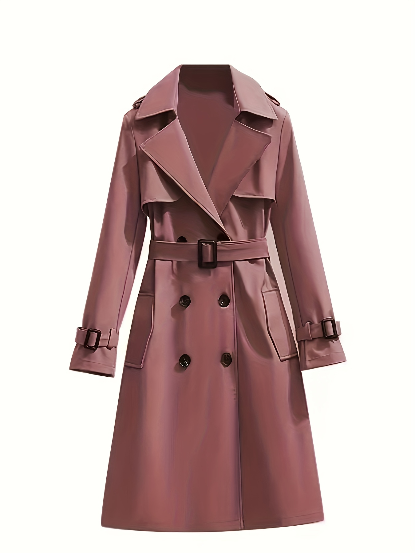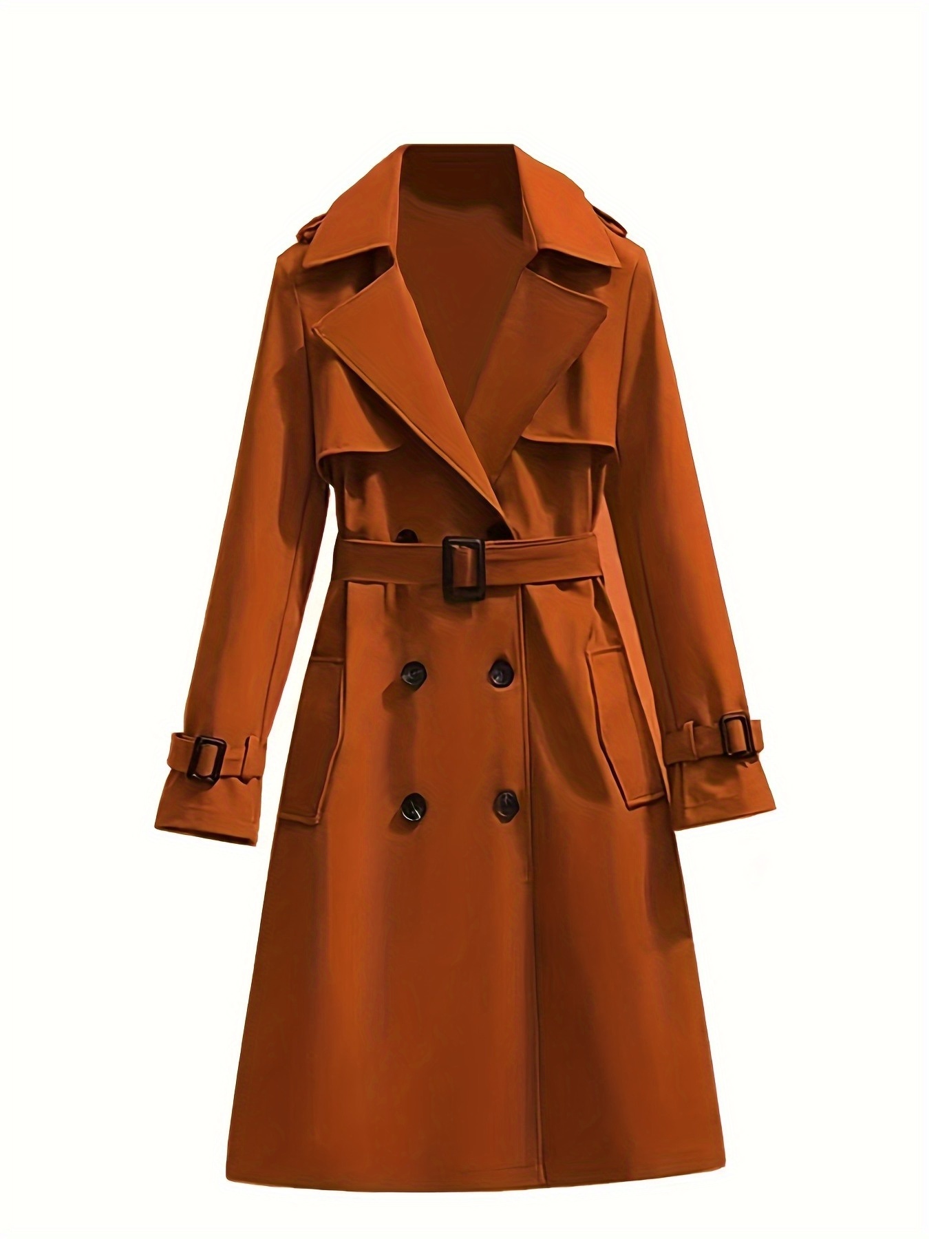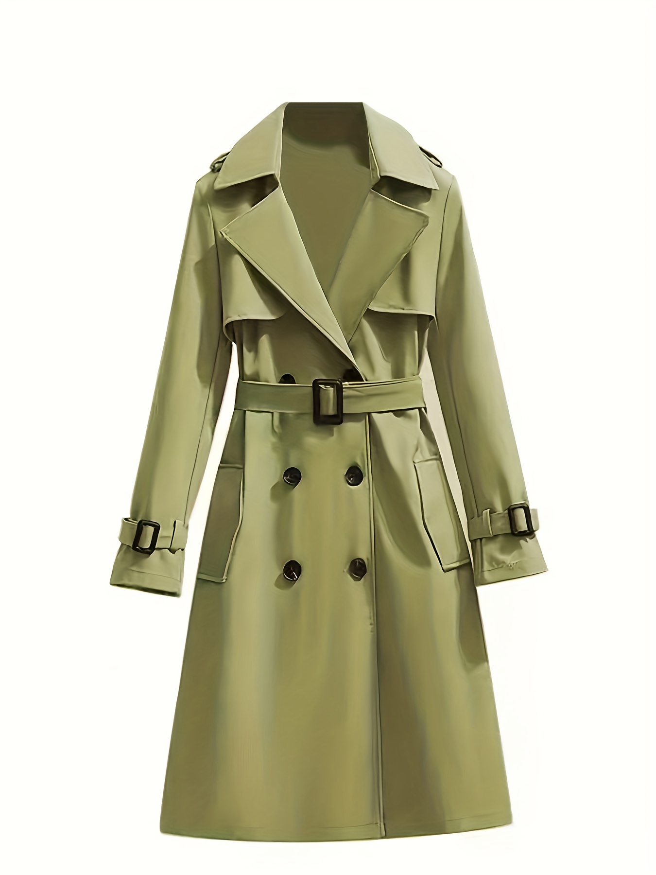 Elegant White Double-Breasted Trench Coat for Women – Long Sleeve, Belted Waist, Button-Up Design, Casual Style, Perfect for Fall & Winter, Casual Winter Wear | Belted Trench Coat | Structured Design