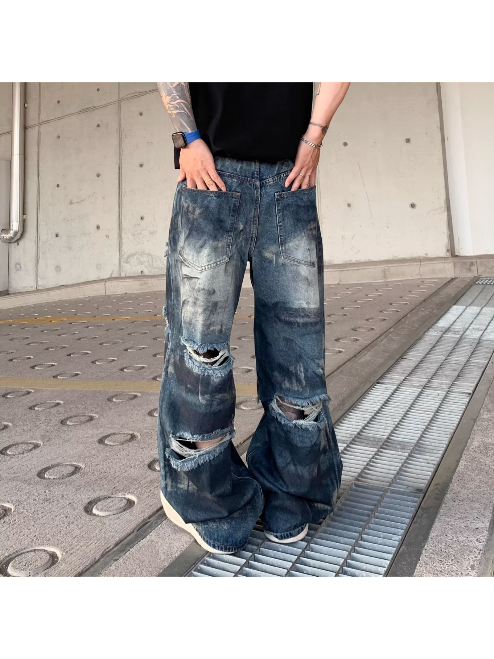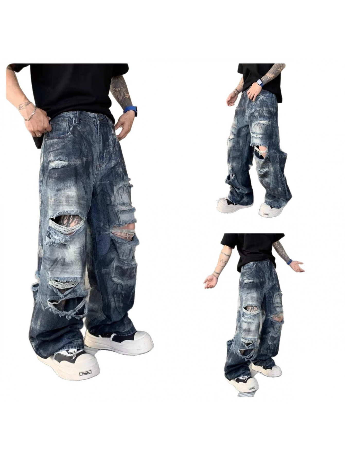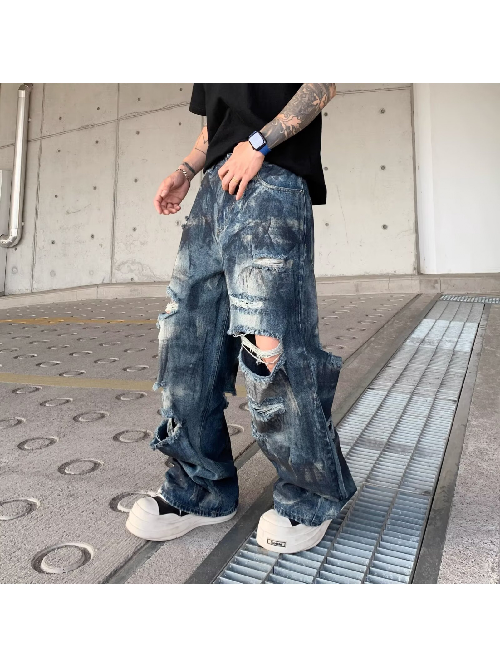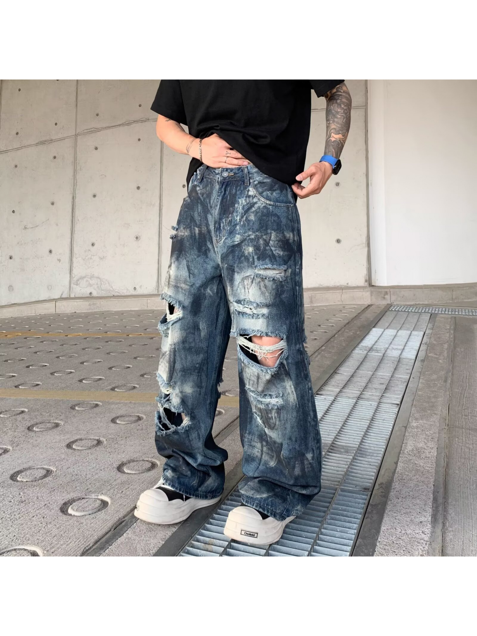 Be the first to review “High Street Inkjet Ripped Jeans for Men and Women Summer 2025 New Heavy Washed Cool Street Style Wide Leg Pants”