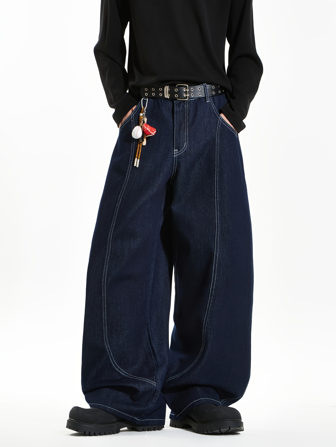 Men’s American High Street Casual Loose Jeans, Fashionable And Simple Line Casual Jeans, All Seasons (without Beltu002Fwithout Hanging Decoration)