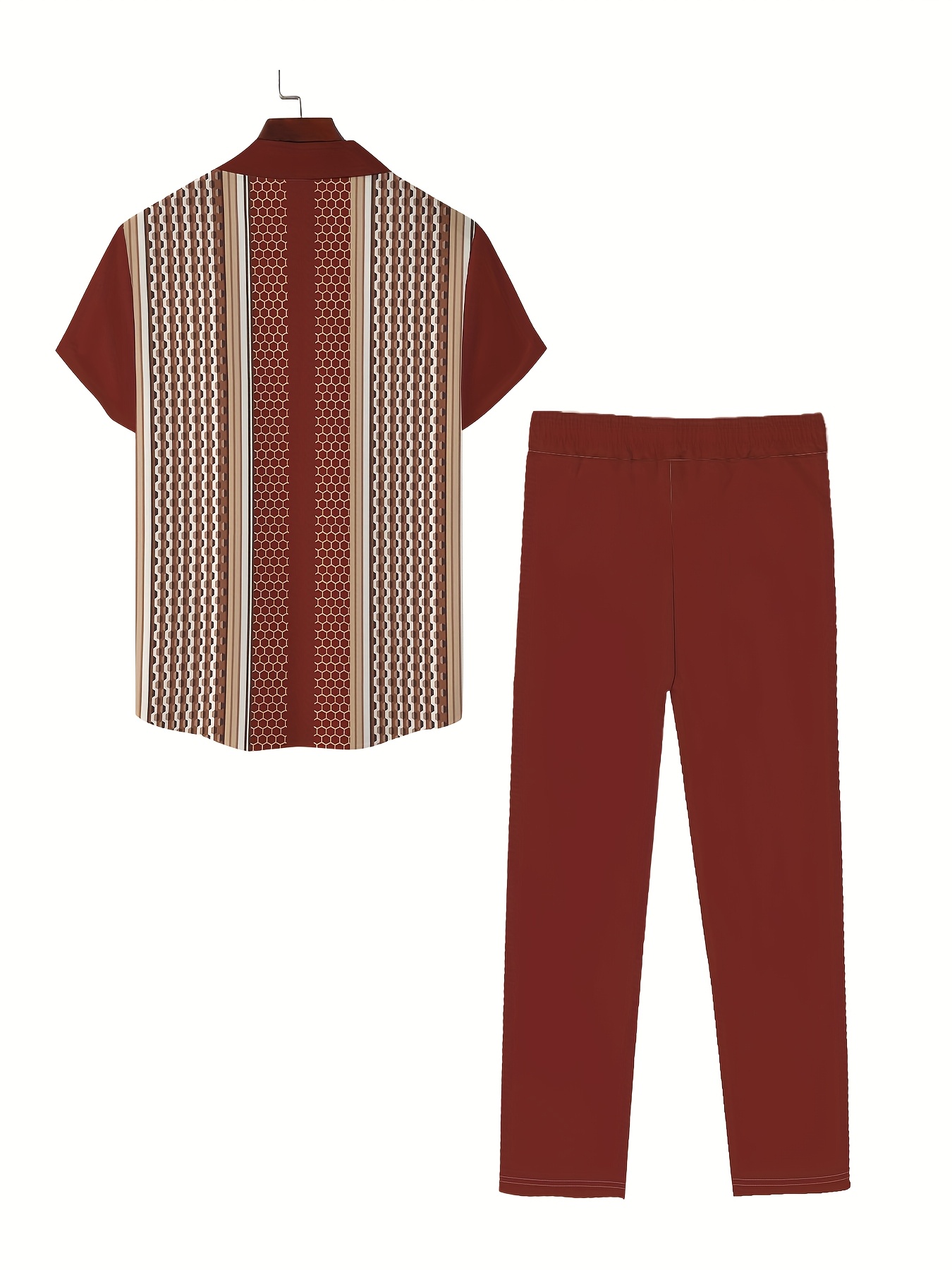 Be the first to review “Men’s Casual Caramel Geometric Print Short Sleeve Shirt & Pants Set – Stylish Brown & Beige Pattern, Comfortable Non-Stretch Polyester, All-Season Wear with Pockets, Casual Attire|Stylish Casualwear|Polyester Fabric” Cancel reply