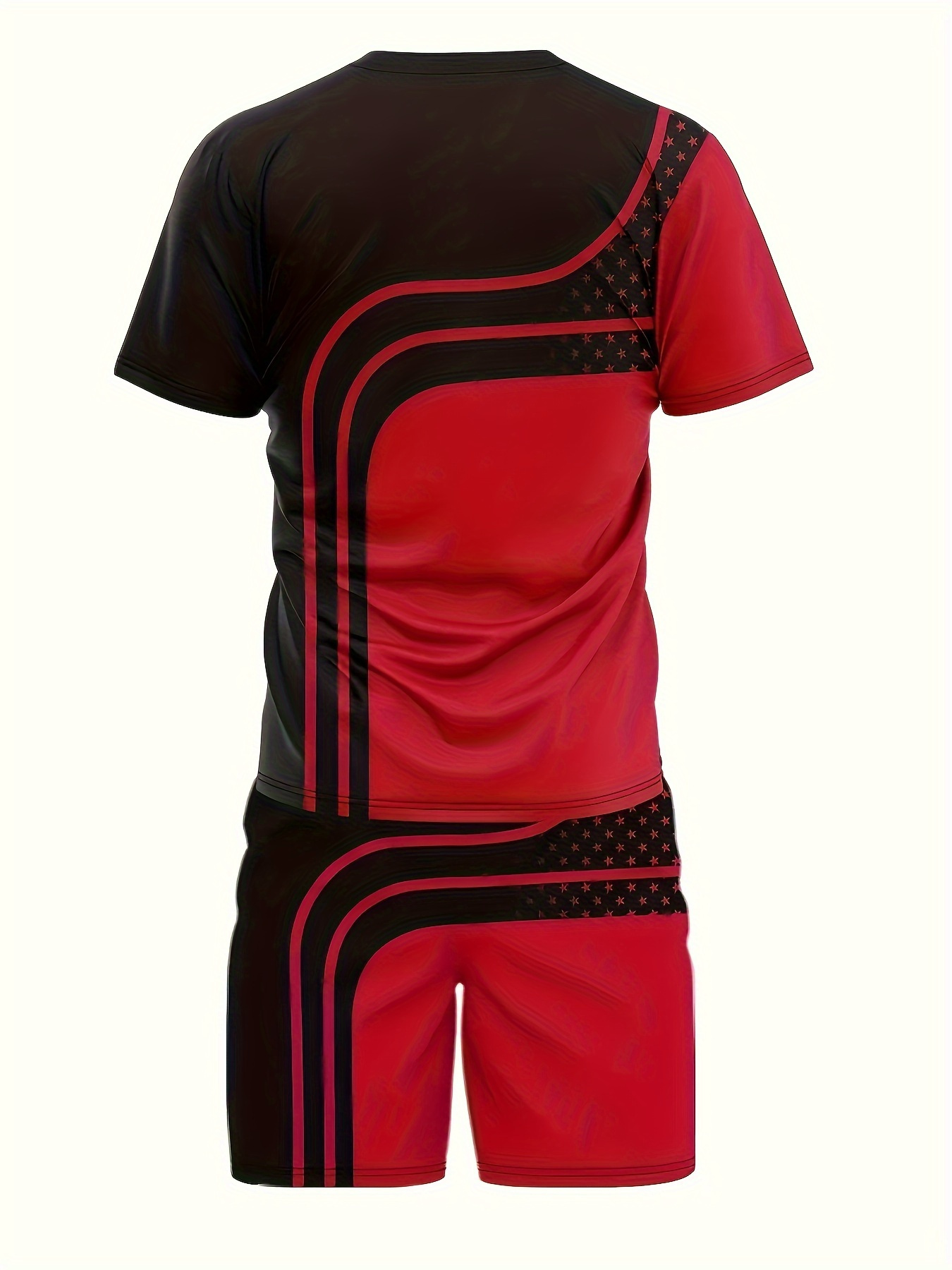 Men’s Contrast Color Stripes Graphic Print T-shirt & Shorts co ord set for Summer Outdoor Sports 2pcs suits