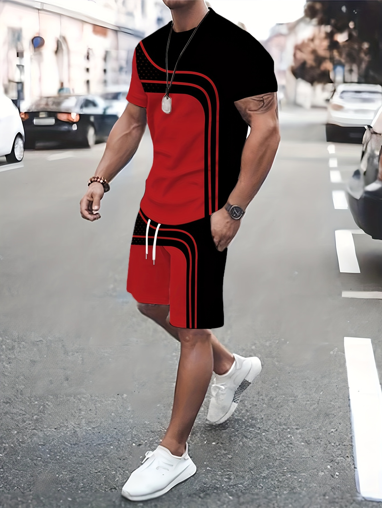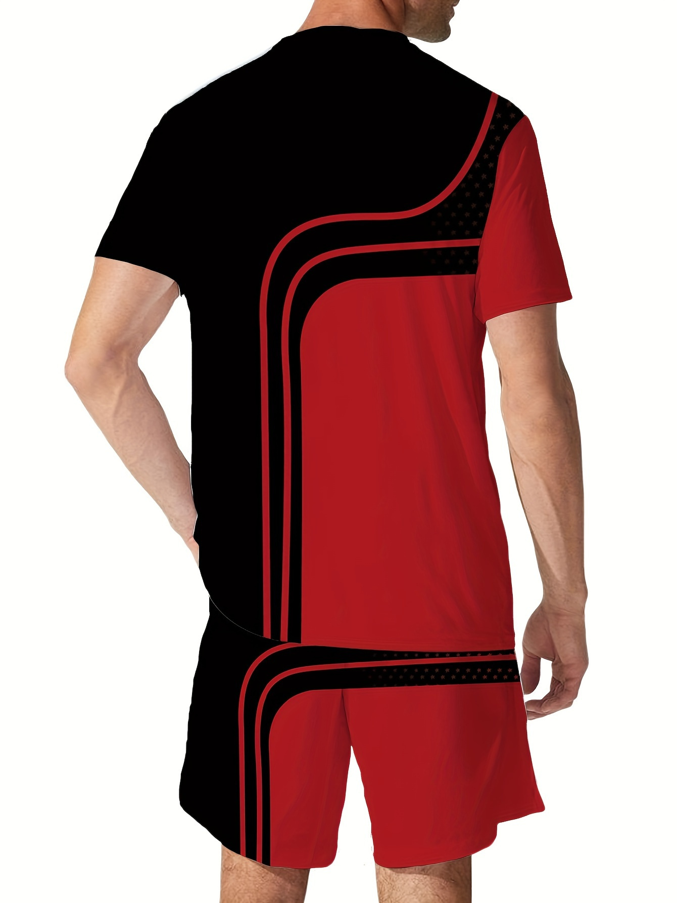 Be the first to review “Men’s Contrast Color Stripes Graphic Print T-shirt & Shorts co ord set for Summer Outdoor Sports 2pcs suits”