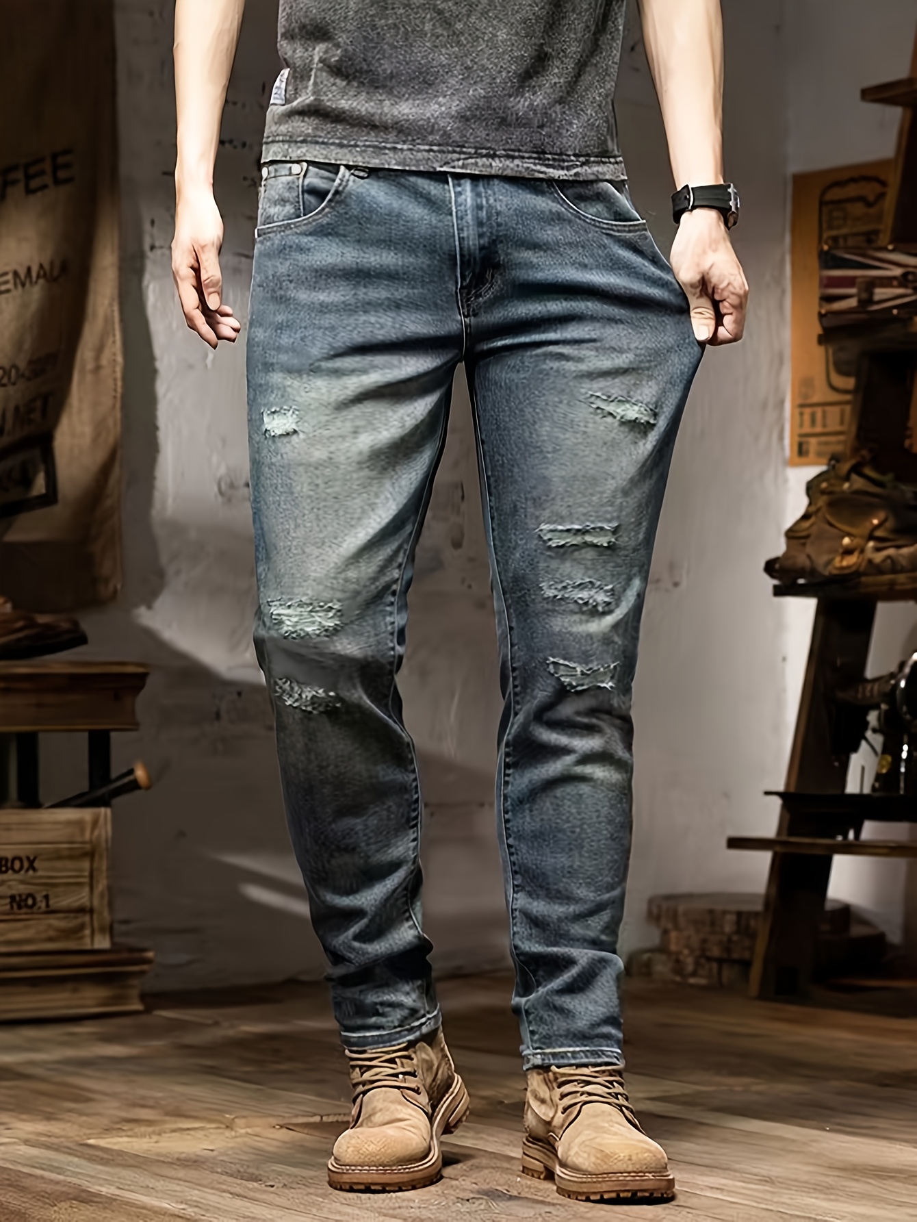 Be the first to review “Men’S Jeans Stretch Trousers Style Bicycle Men’S Trousers Street Style Blue Frayed Jeans Can Be Worn All Seasons”
