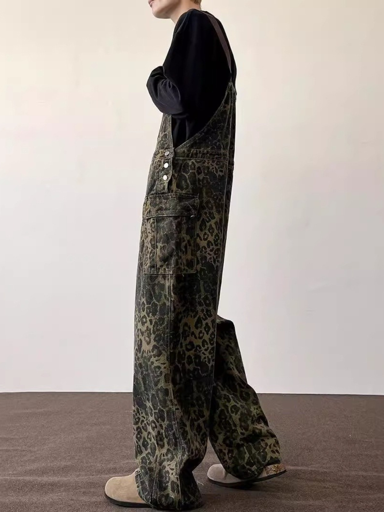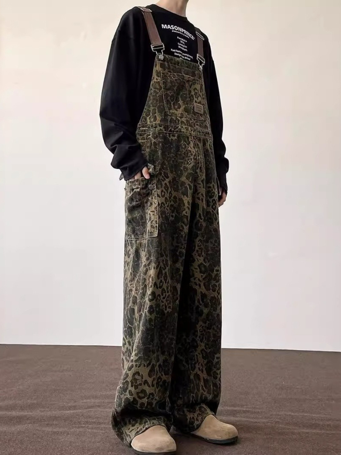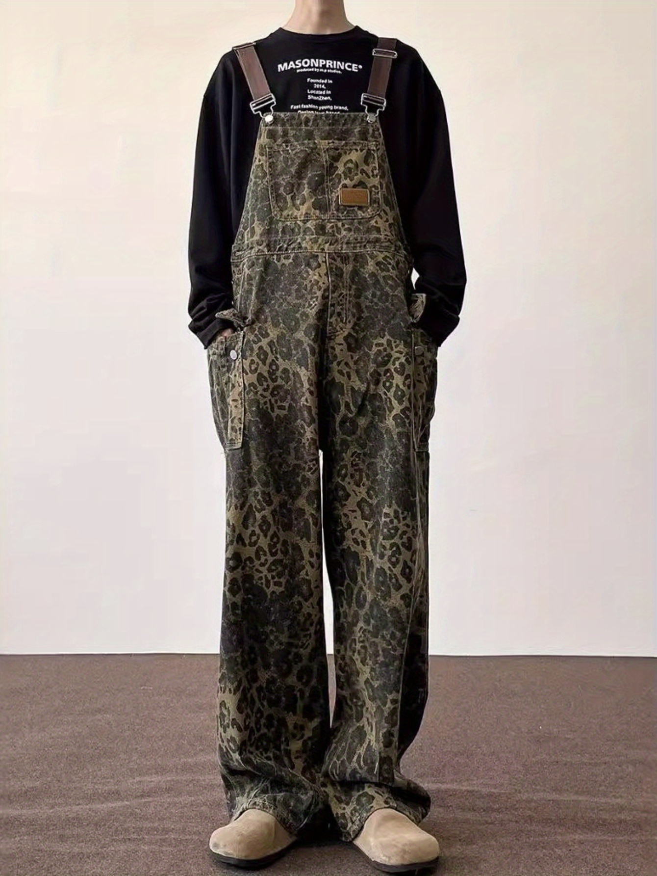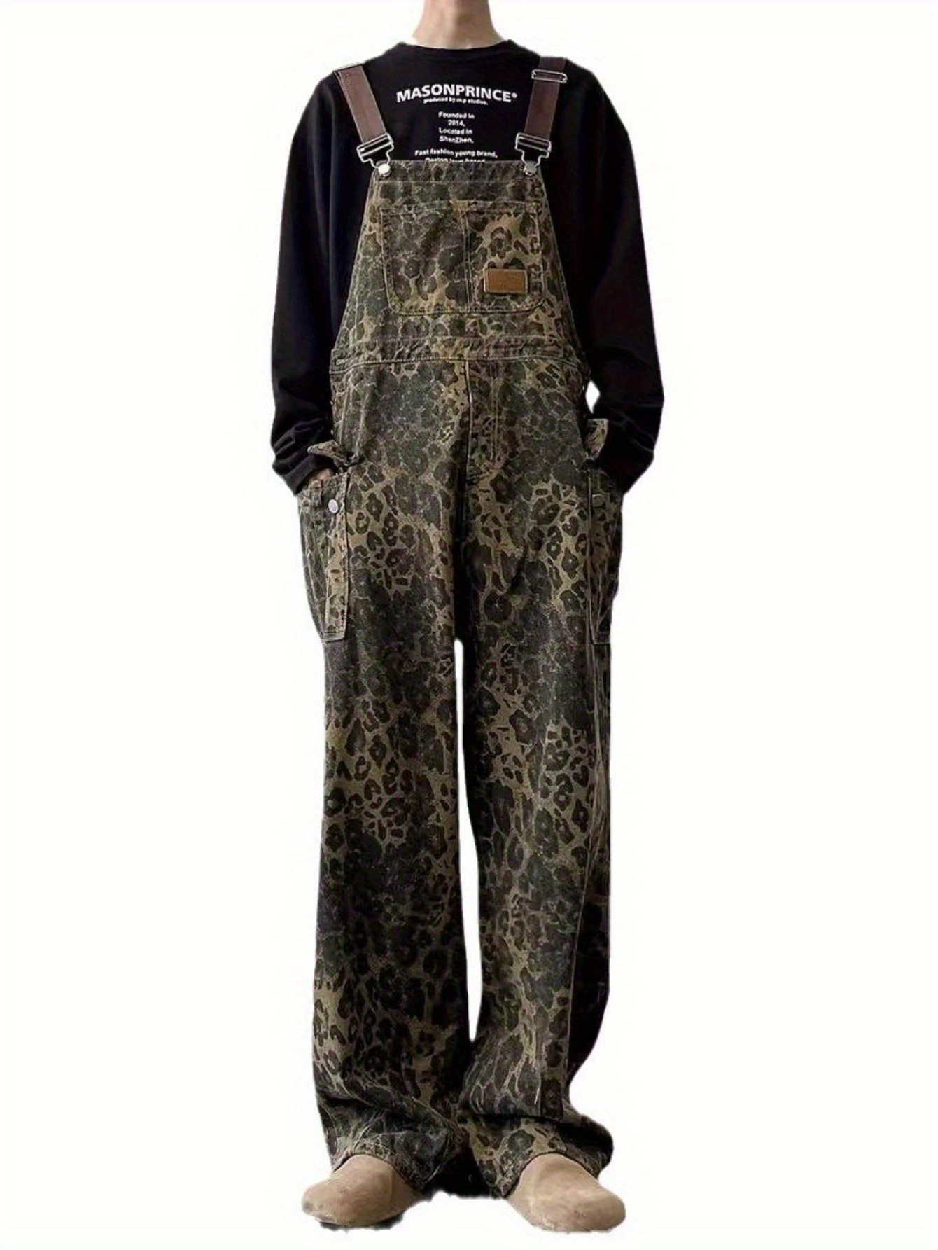 Men, UncategorizedMen’S Retro Leopard Print Overalls – Loose Fit Wide-Leg Faux Denim with Elastic Waistband, High-Stretch Fabric & Multiple Pockets, Casual Summer Outfit for Adults, Leopard Print Faux Denim, Highwaist Design, Comfortable Wear