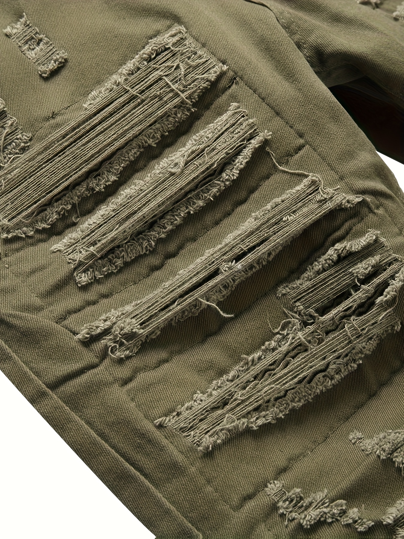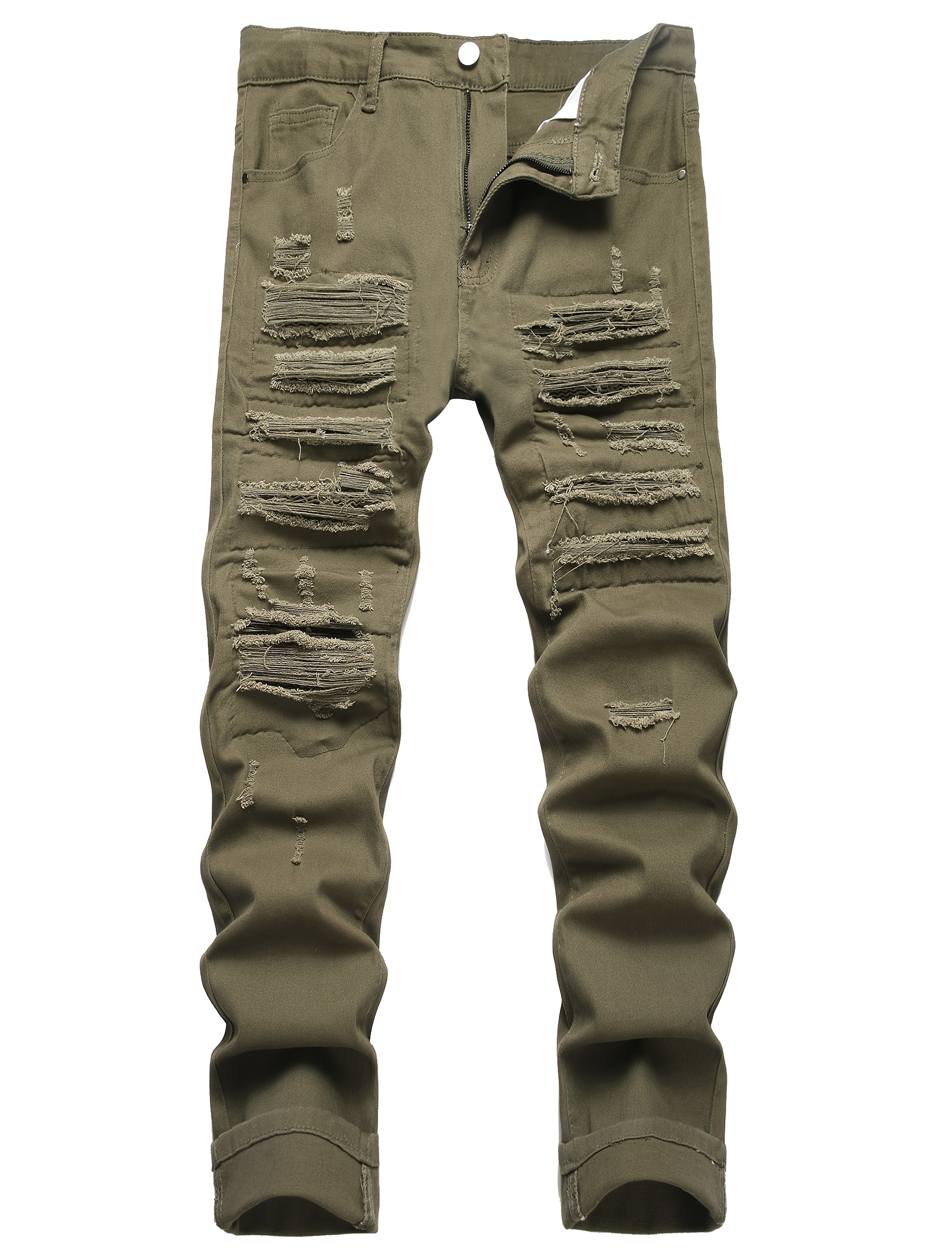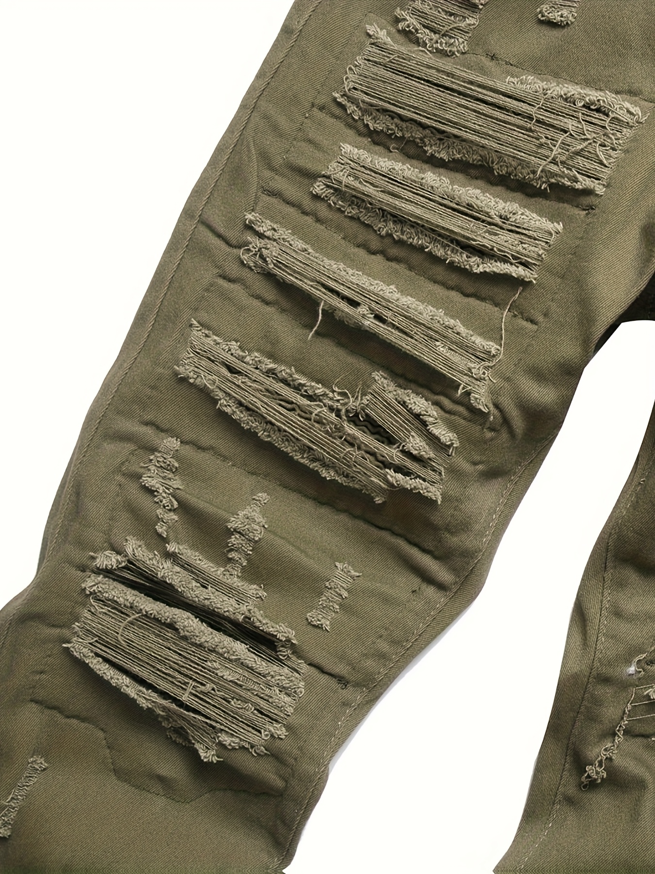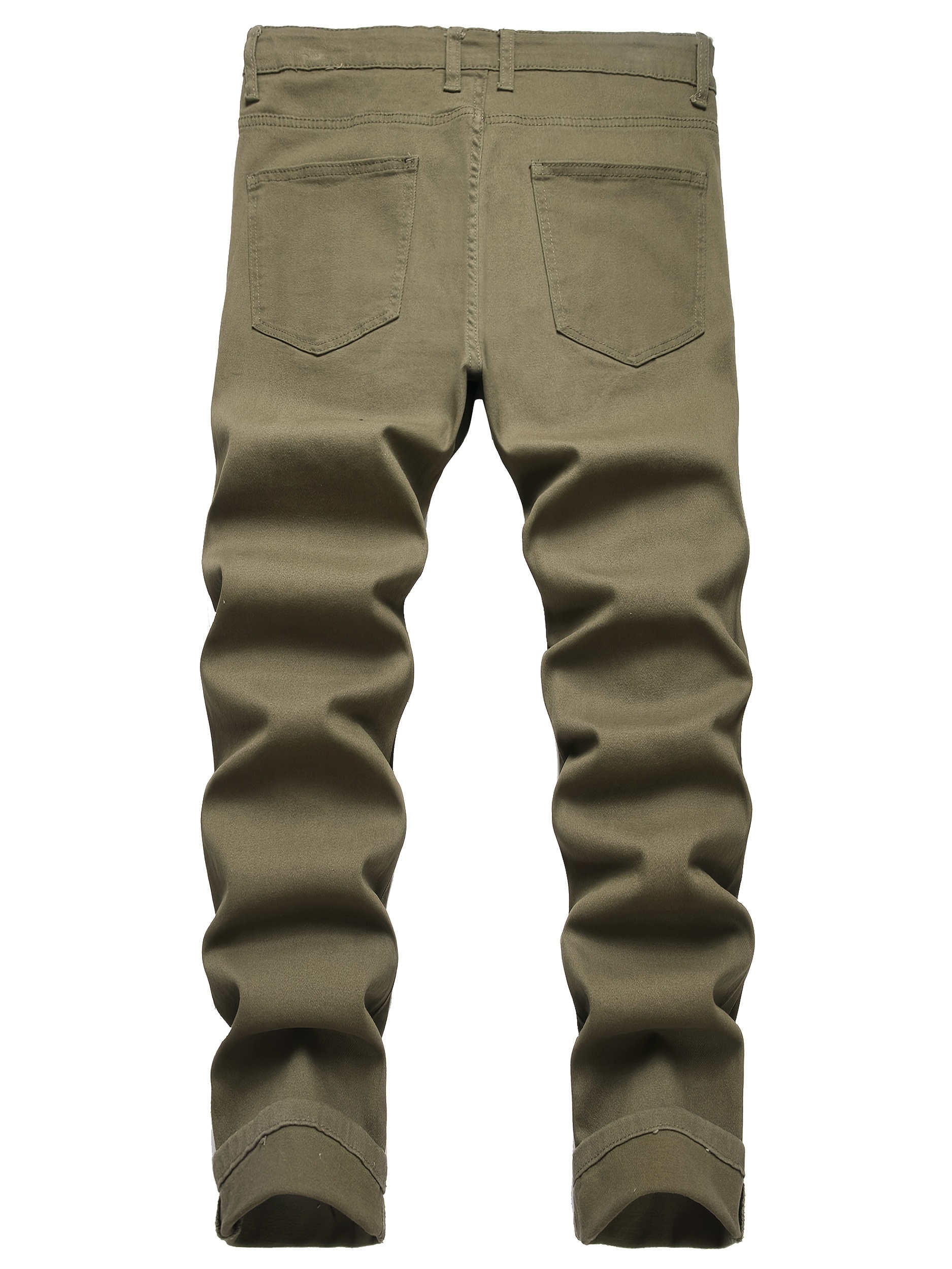 Men’s Slim Fit Ripped Skinny Jeans – Stretch Denim Biker Pants with Distressed Detailing, Olive Green, Casual Streetwear Style, Machine Washable, Streetwear Jeans | Casual Style Jeans | Cotton Blend Jeans