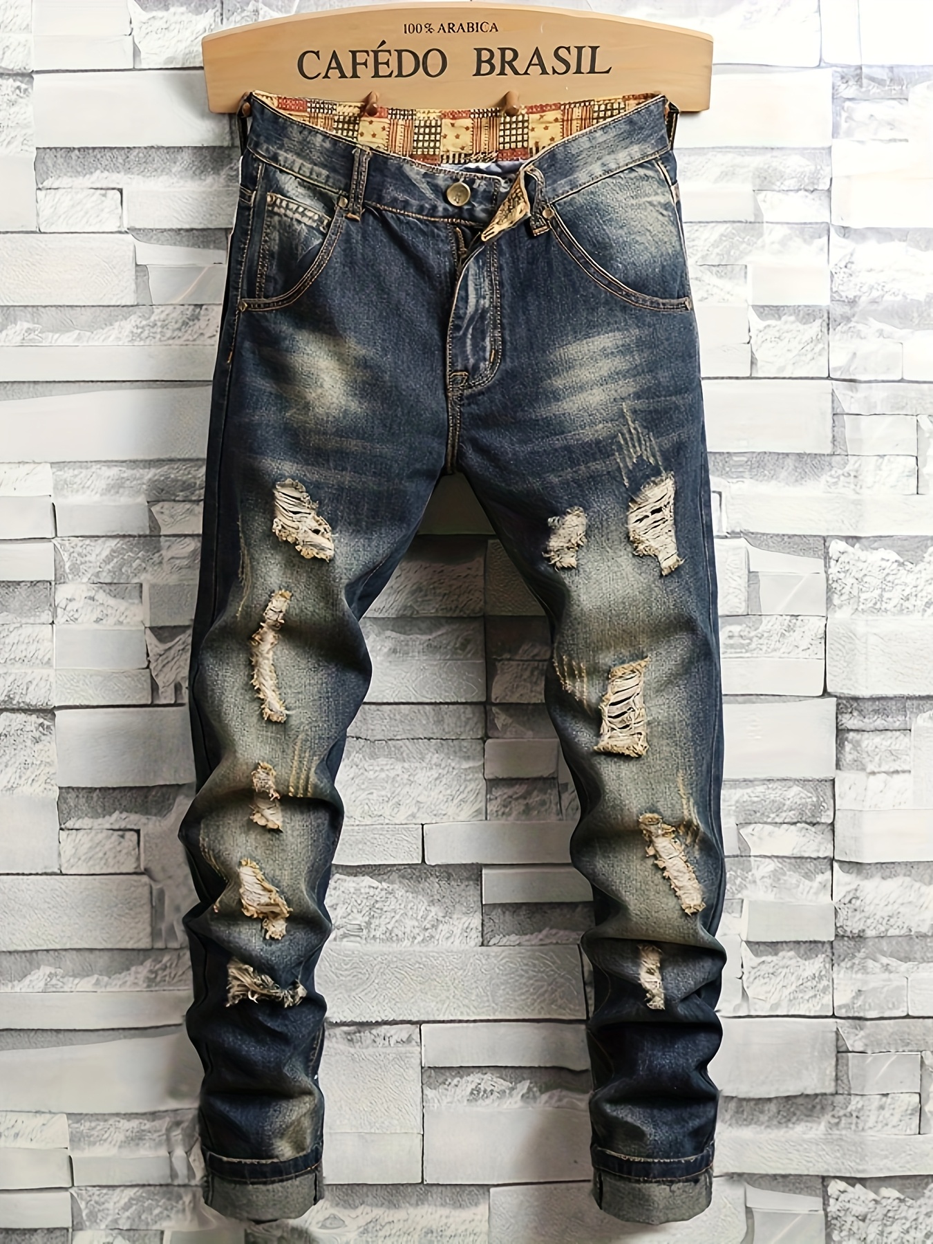Be the first to review “Men’s Springu002Fsummer American Retro Loose Ripped Versatile Fashion Straight Leg Small Leg Jeans”