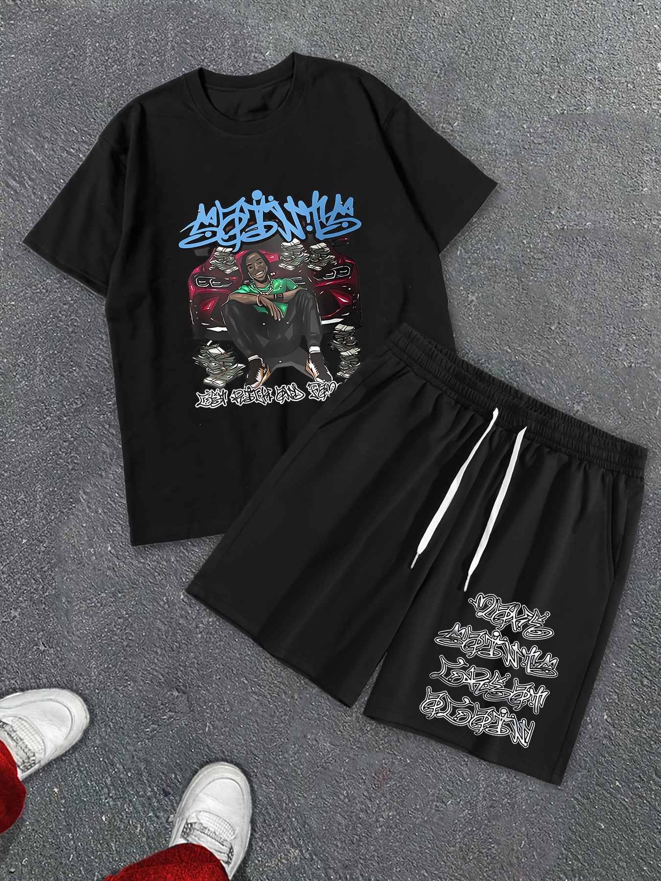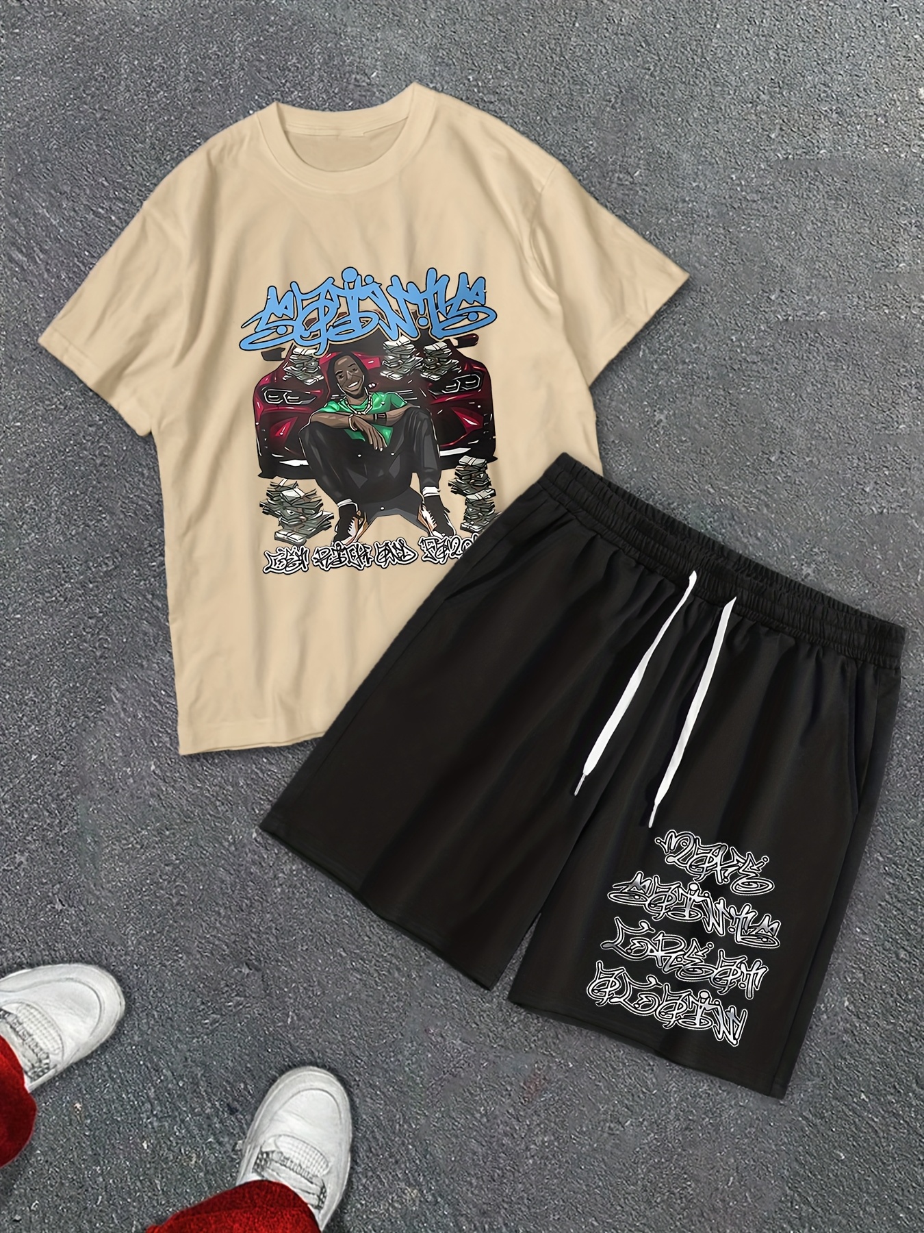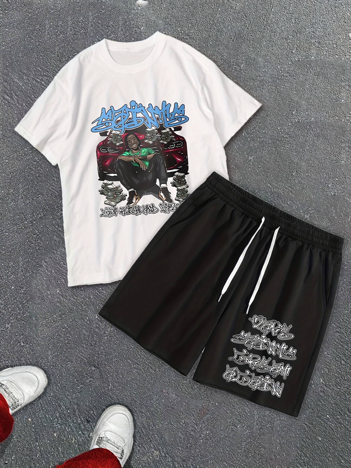 Summer Shorts Short Sleeve Suit, Rock Hip Hop Printed Street Style Two-piece Costume, Men’s T-shirt And Drawstring Shorts Suit with Pocket, Quick-drying Sports Suit, Comfortable And Breathable, Street Costume Y2K.