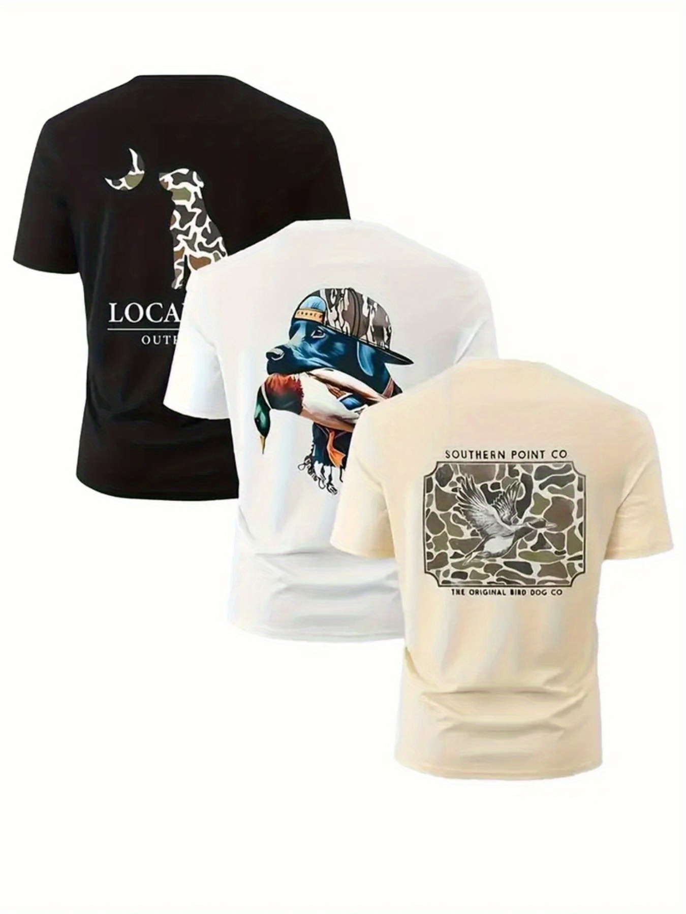 Three-pack Outdoor leisure and hunting-themed style – Men’s 100% pure cotton T-shirt, a comfortable, casual, versatile, and fashionable round neck short sleeved essential for men, can be used as a gift- Printed and shipped in the USA