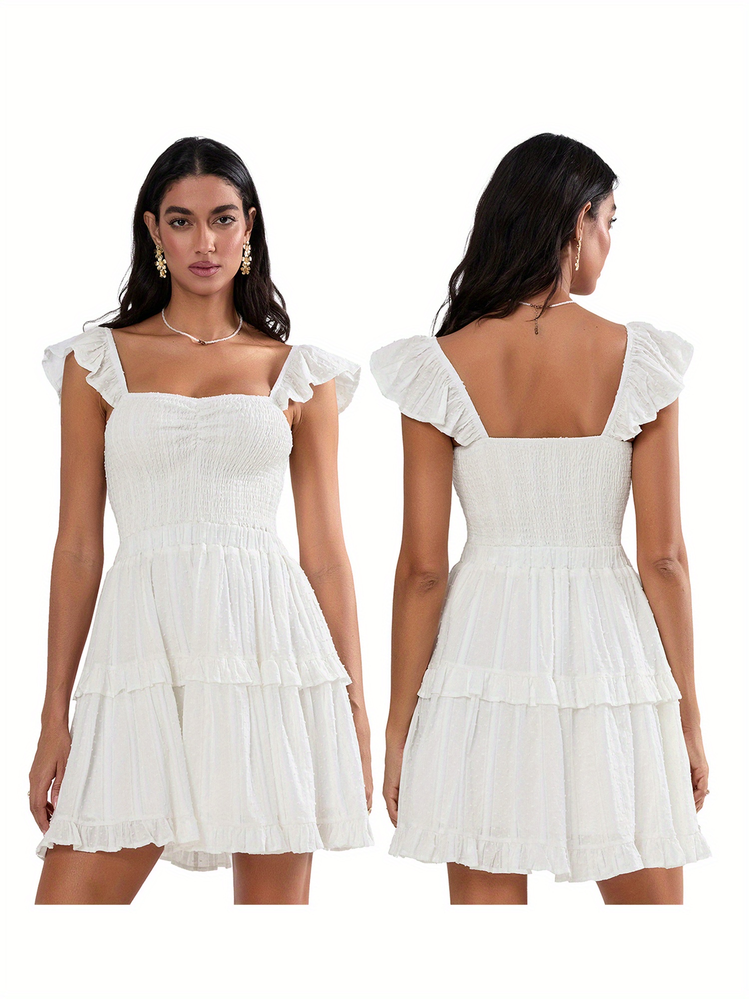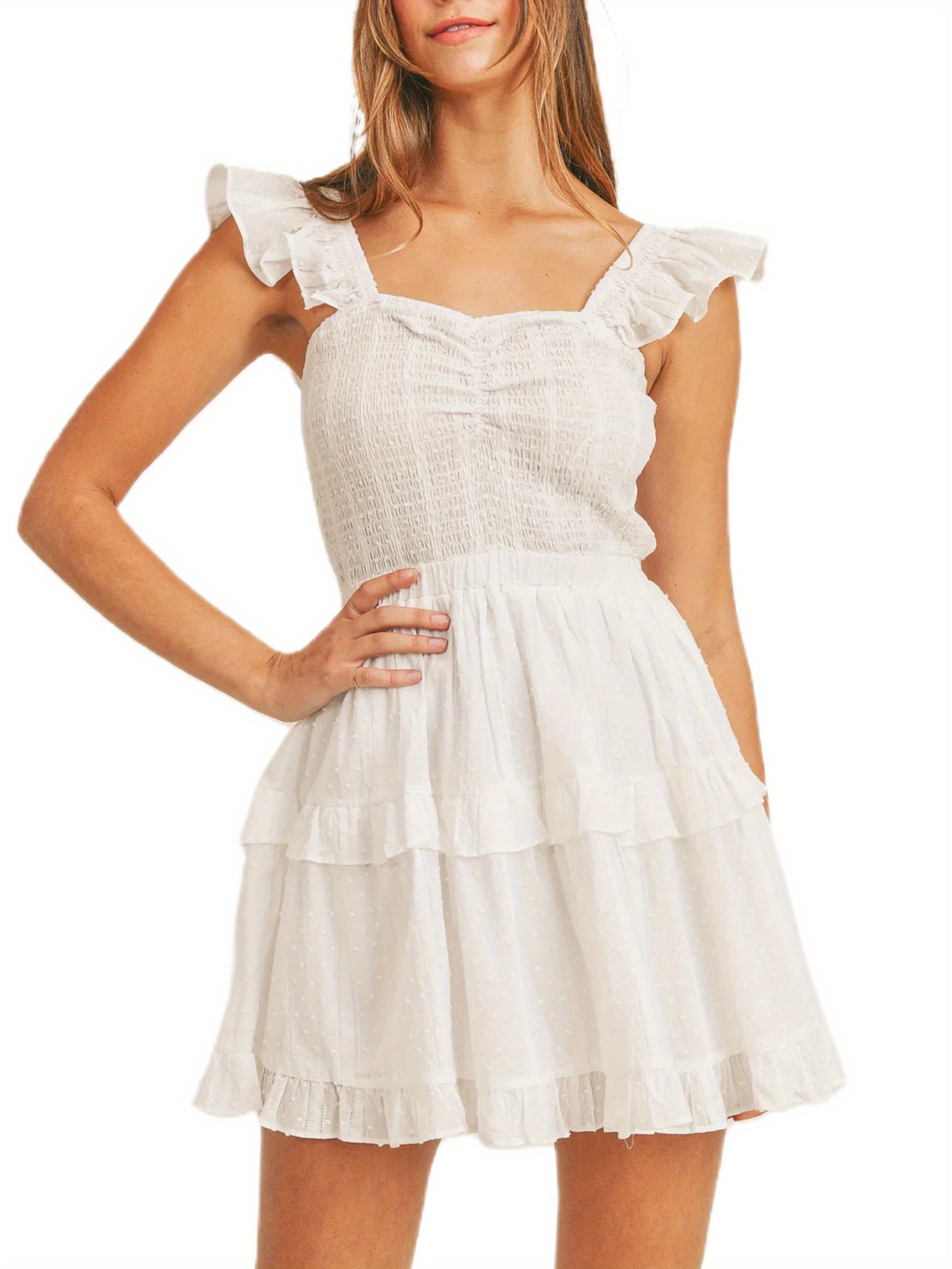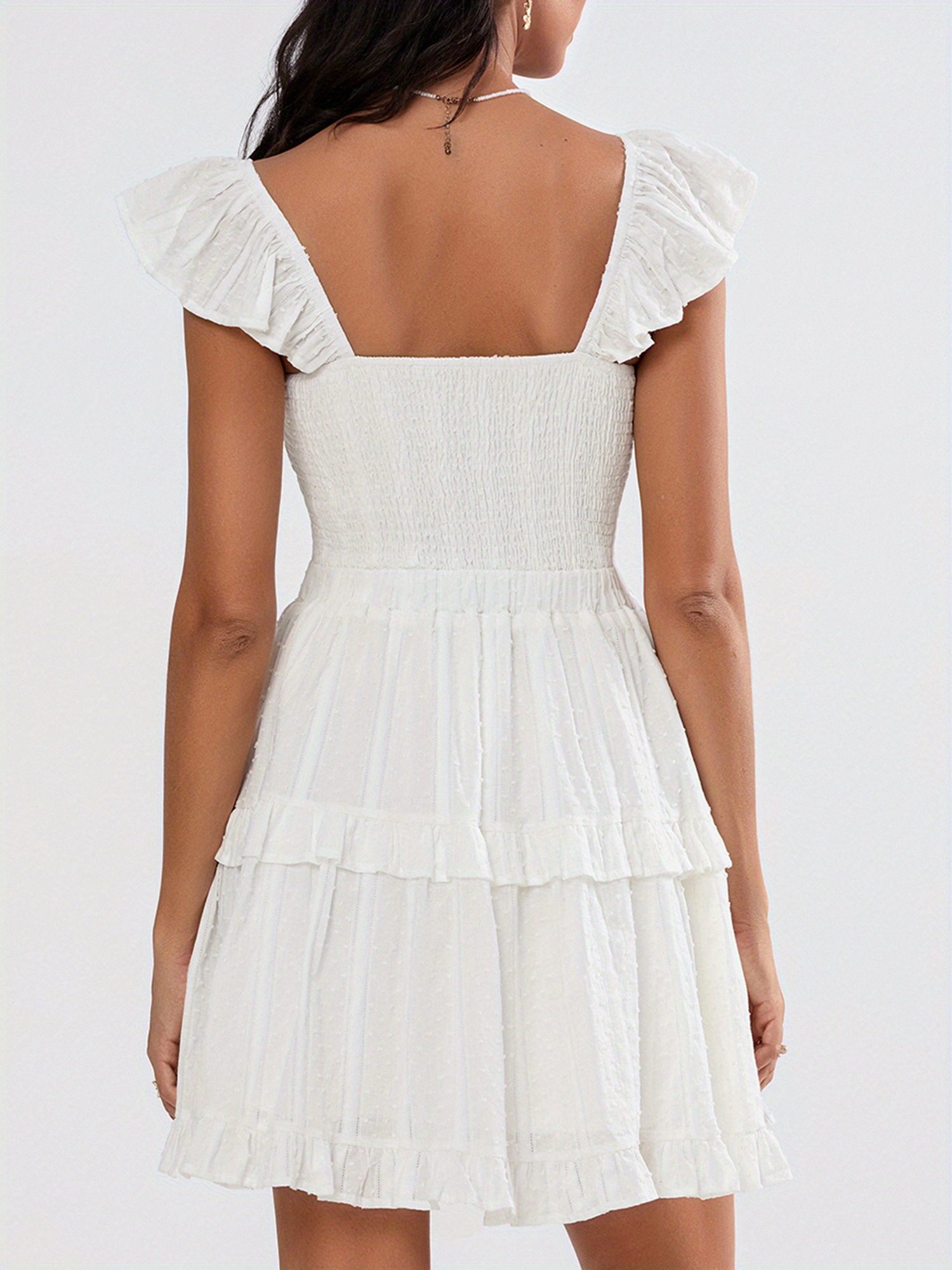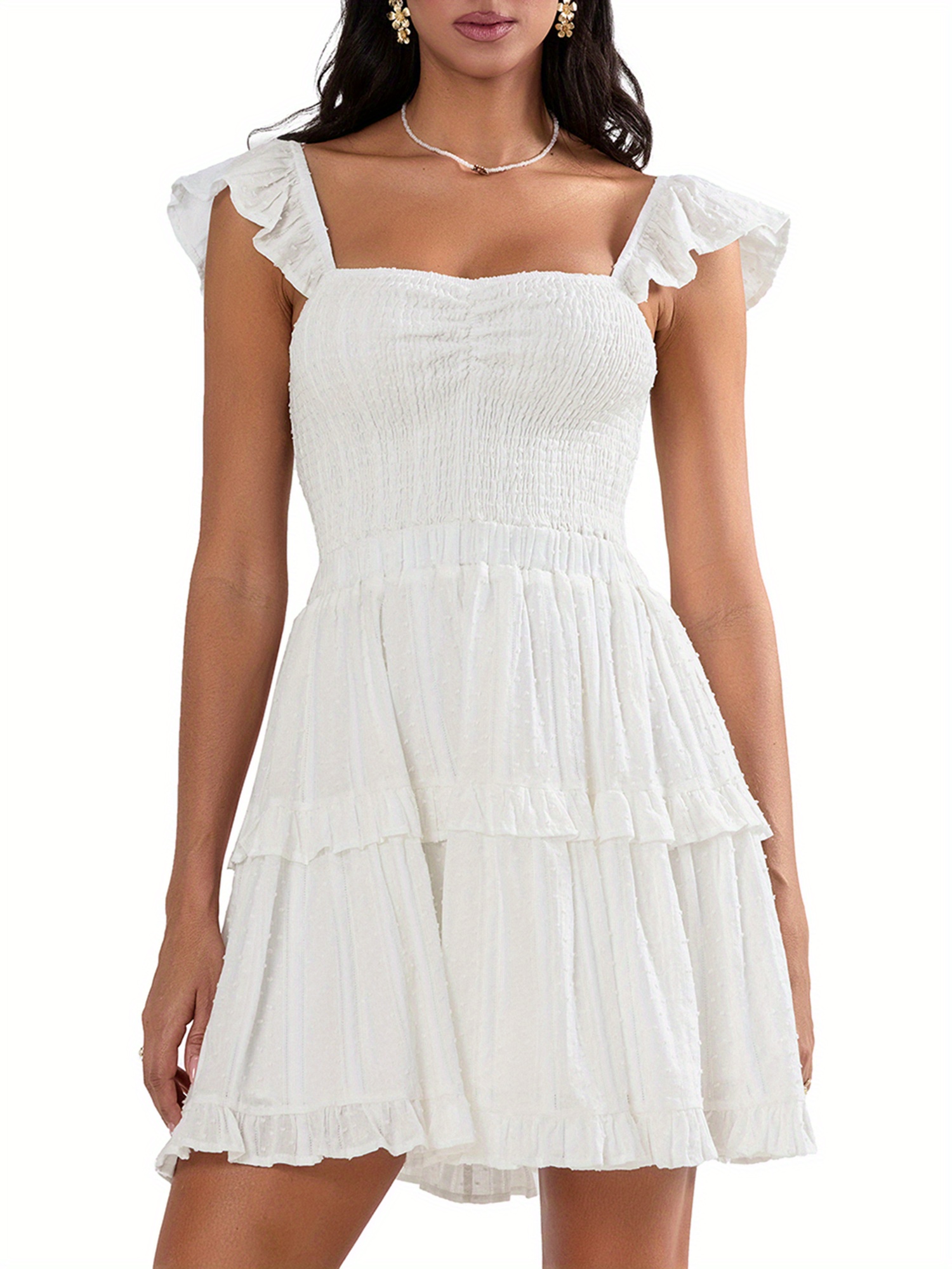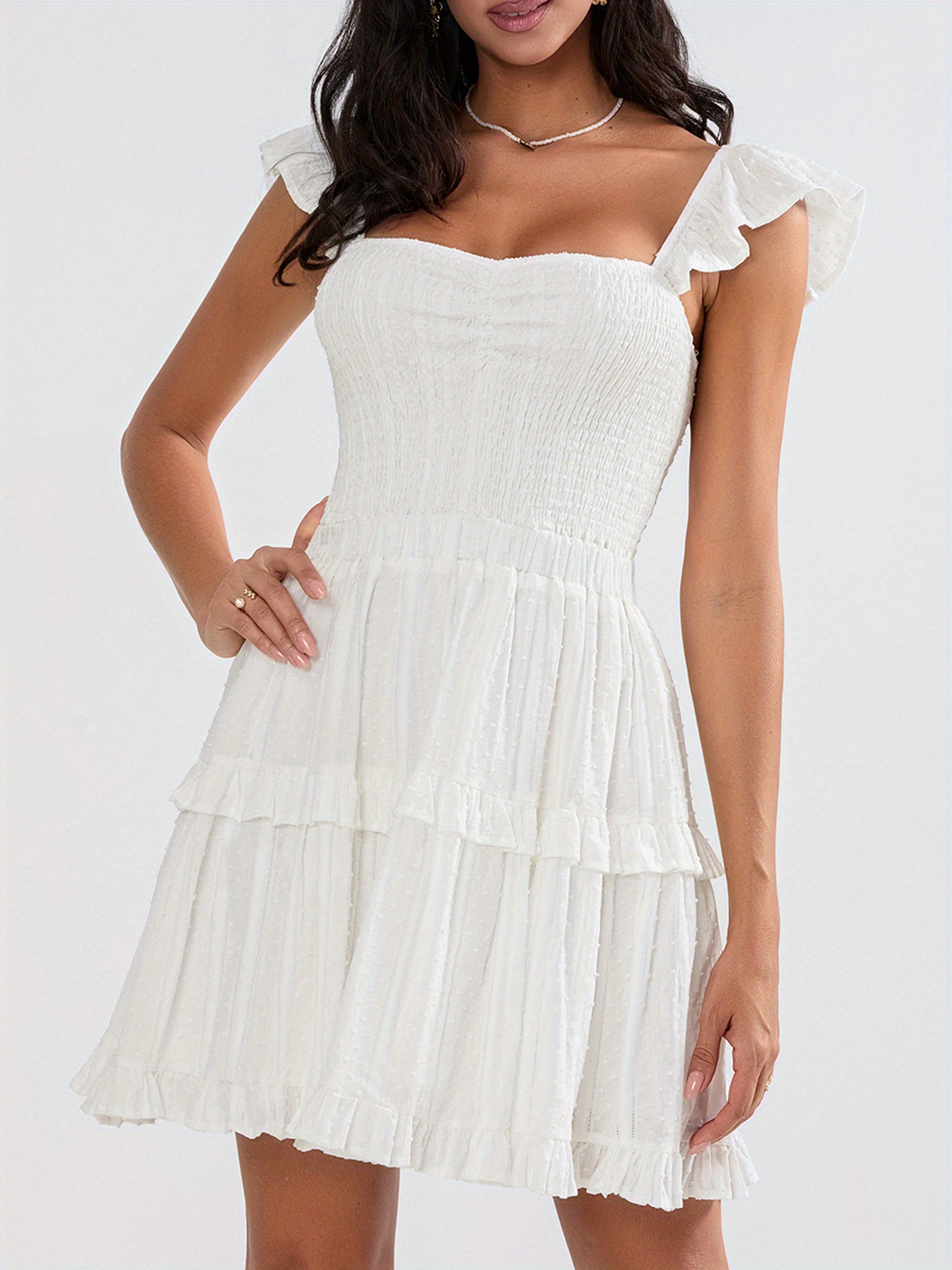Women Slip Dress, Sleeveless Backless Pleated Dots A-line Dress Summer Mini Dress