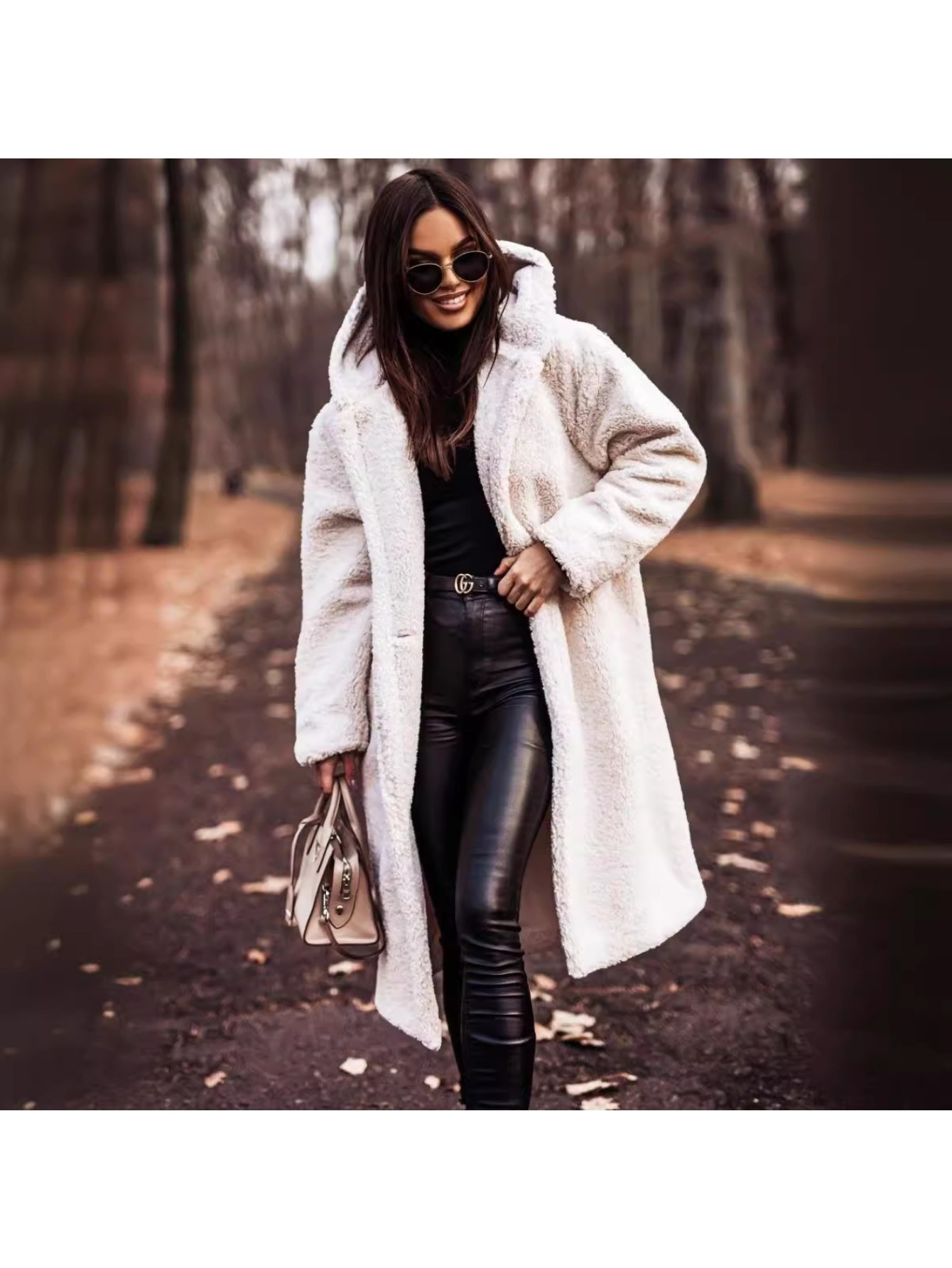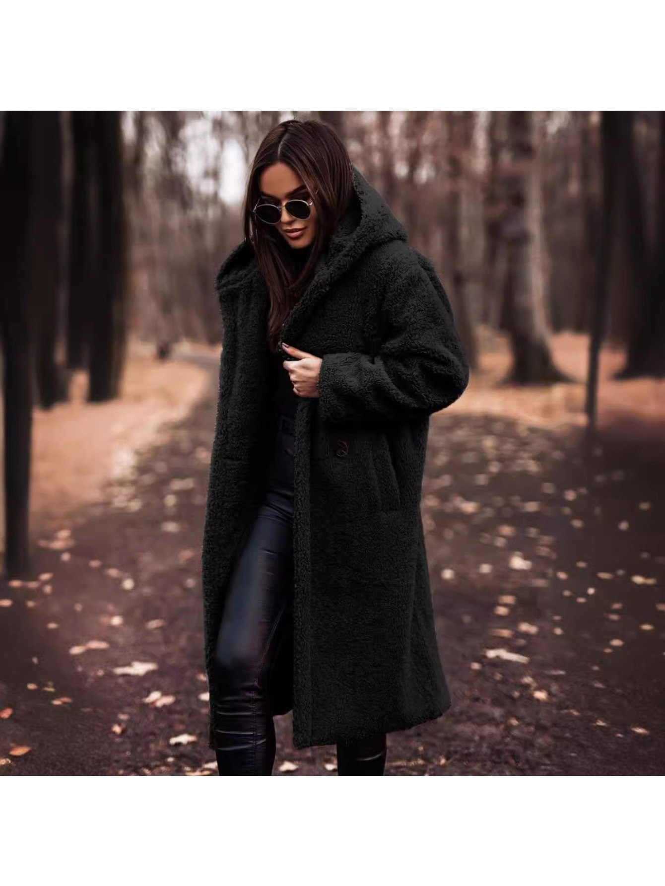 Women’s 2025 Fall Winter Hooded Fleece Coat – Oversized Mid-Length Long Sleeve Solid Color Jacket with Pockets, Soft Warm Cozy Outerwear for Daily Wear, Casual to Semi-Formal Outfits (Machine Washable, No-Stretch Fabric) – White & Neutral Tones Available