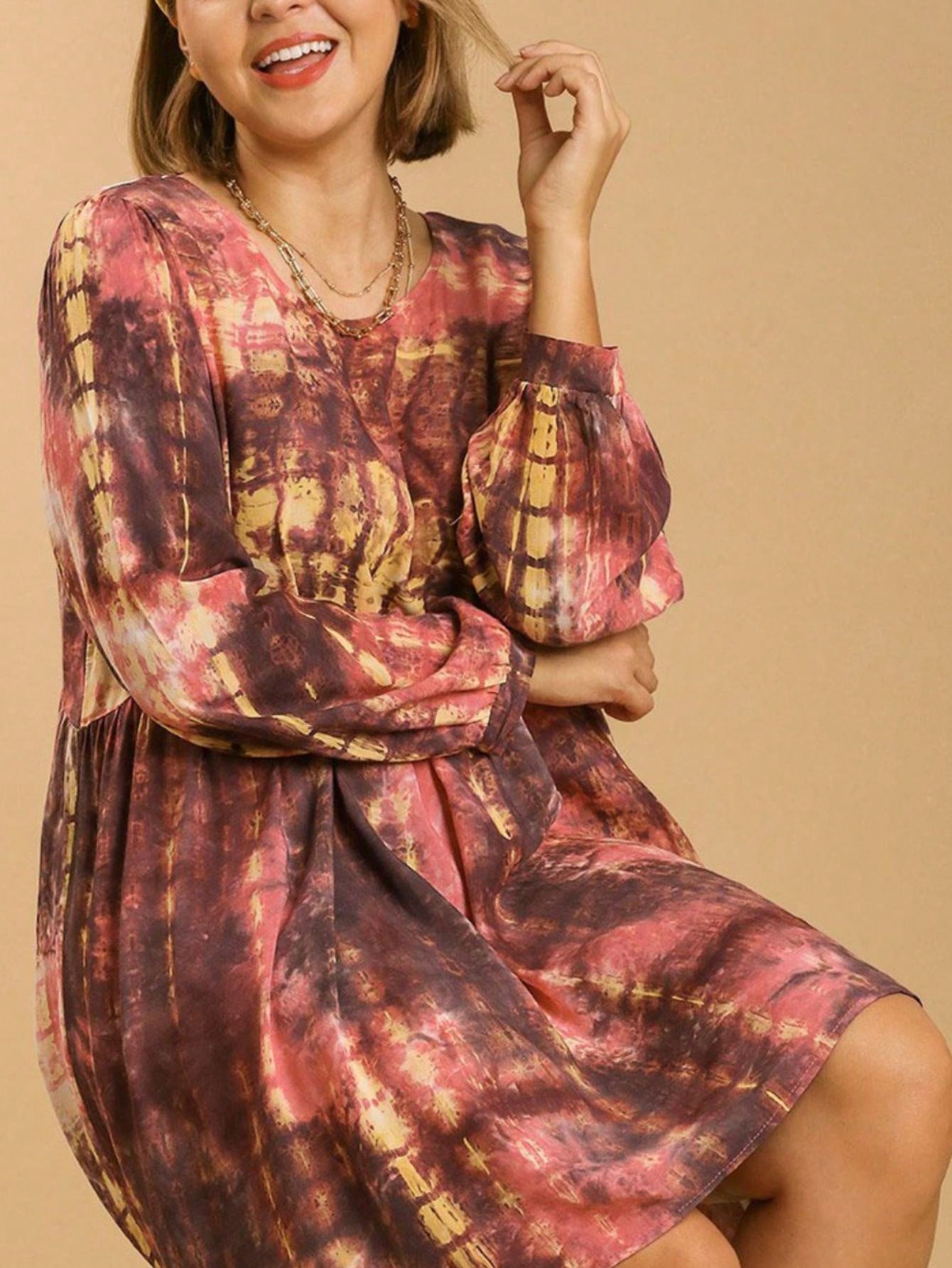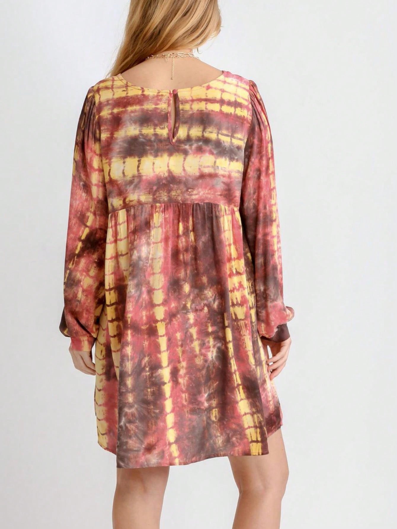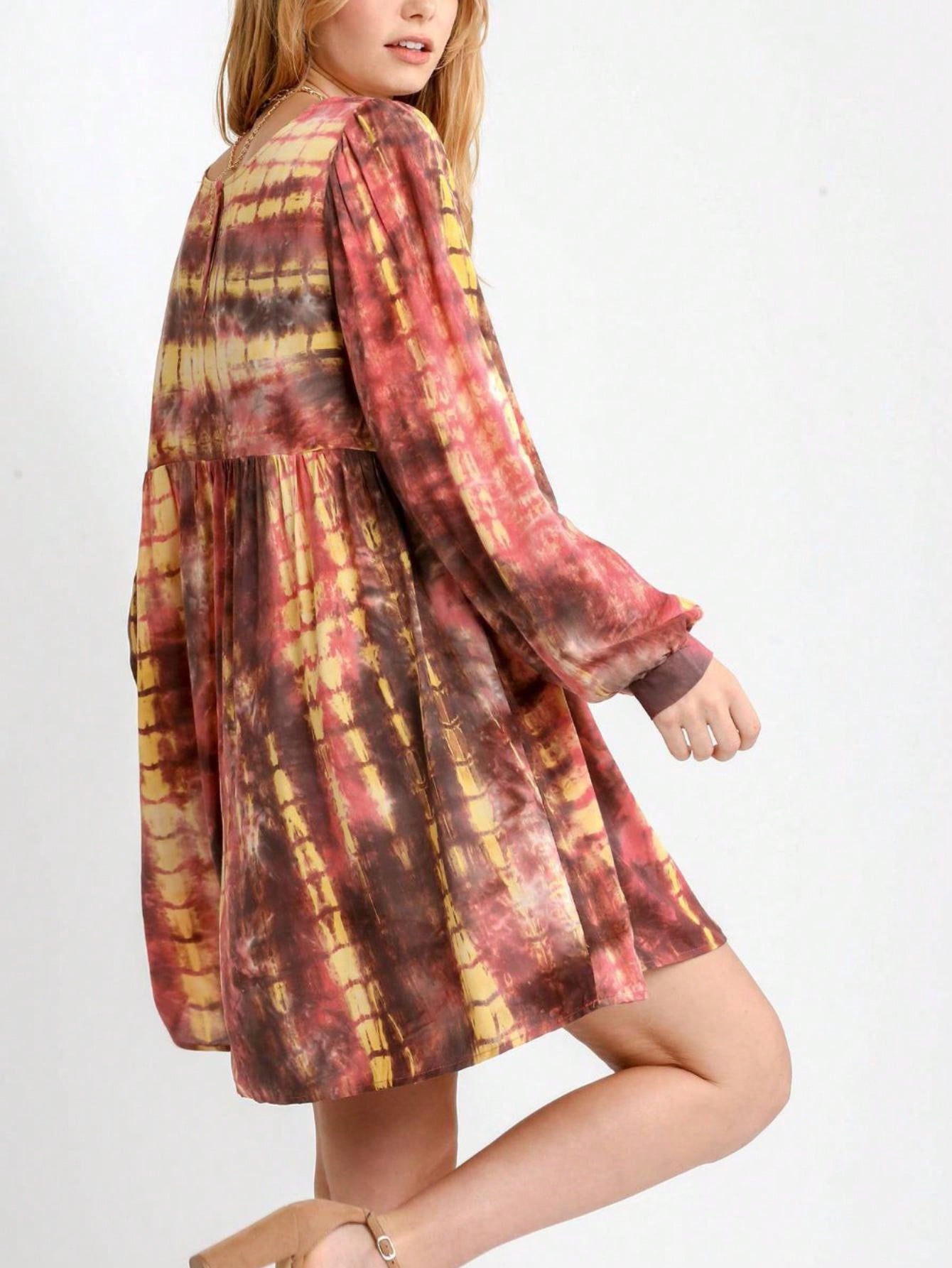 The Tie Dye Long Sleeve Babydoll Dress with Keyhole is a fashionable and charming choice for a relaxed yet chic look. Featuring a tie-dye pattern. long sleeves. a babydoll silhouette. and a keyhole detail. this dress offers a bohemian and playful style. The keyhole adds a touch of allure to the ensemble. Pair it with sandals or boots for a casual and chic outfit that is perfect for a variety of occasions.