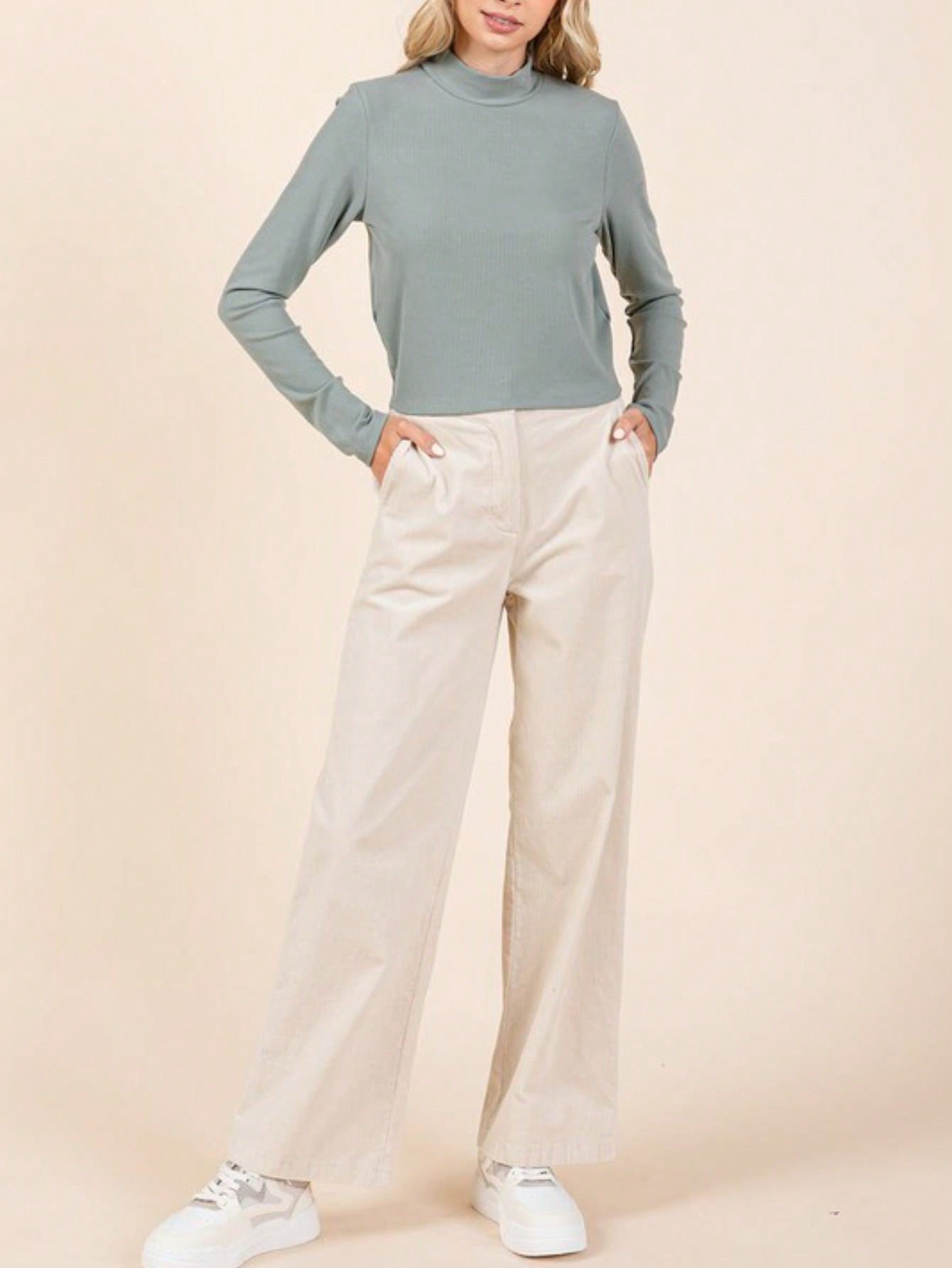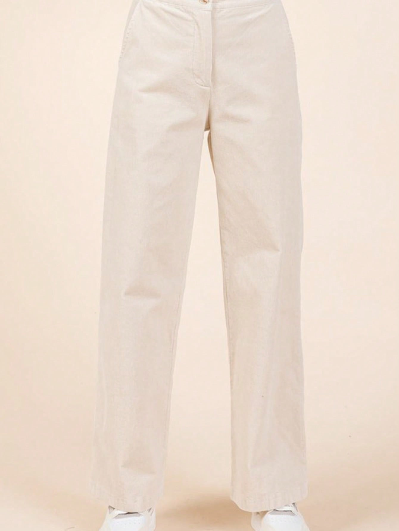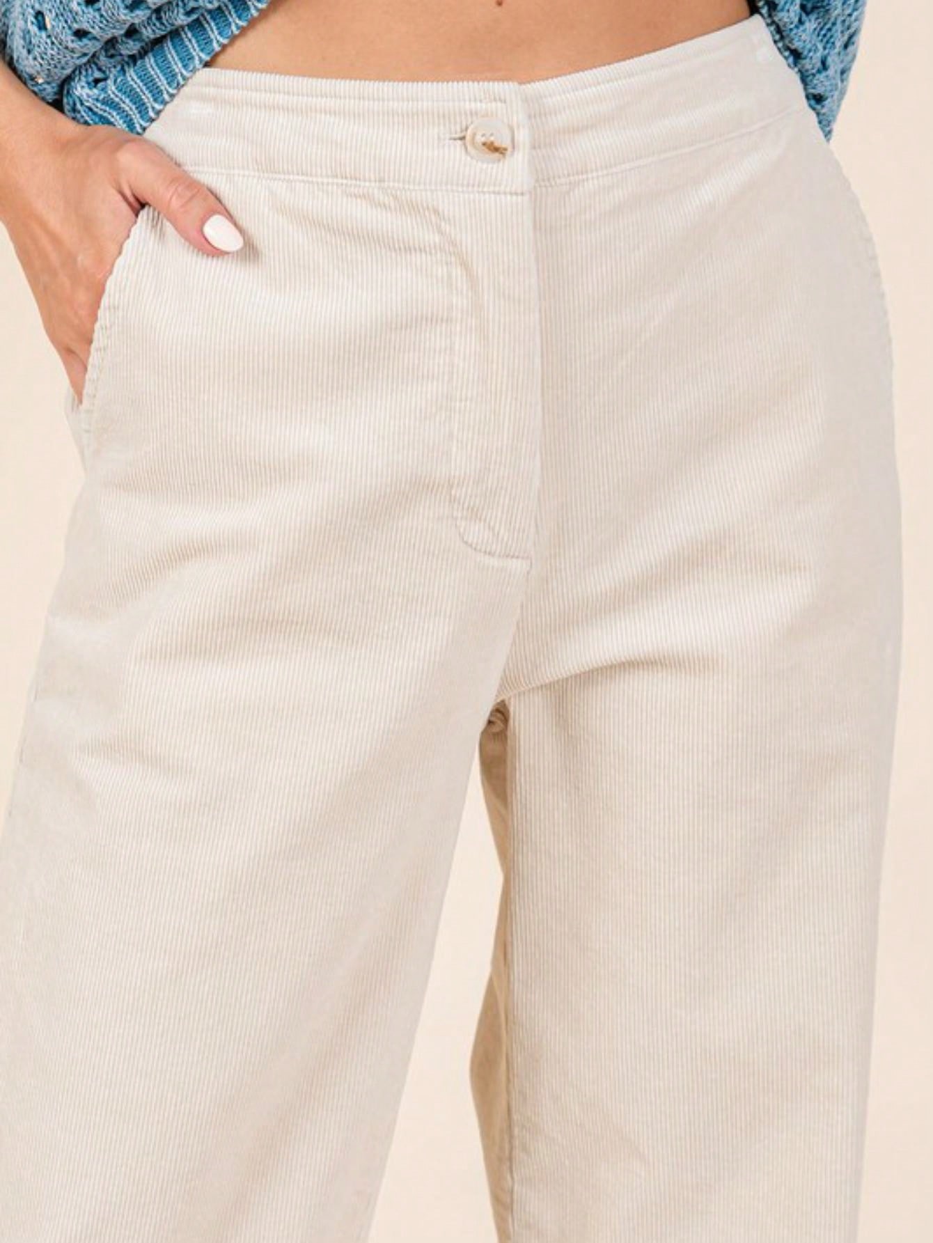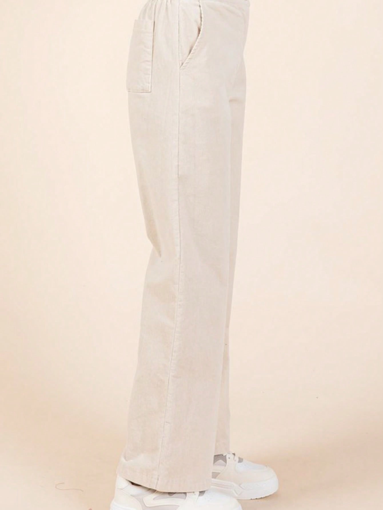 These pants are designed for comfort and style. featuring stretchy corduroy knit fabric that allows for easy movement. The elastic back waistband ensures a snug fit. while the zipper fly with button closure provides a polished look. With side and back pockets for practicality. these full-length. straight-fit semi-wide leg pants are perfect for both casual and dressier occasions. The versatile design makes them easy to pair with various tops and footwear!