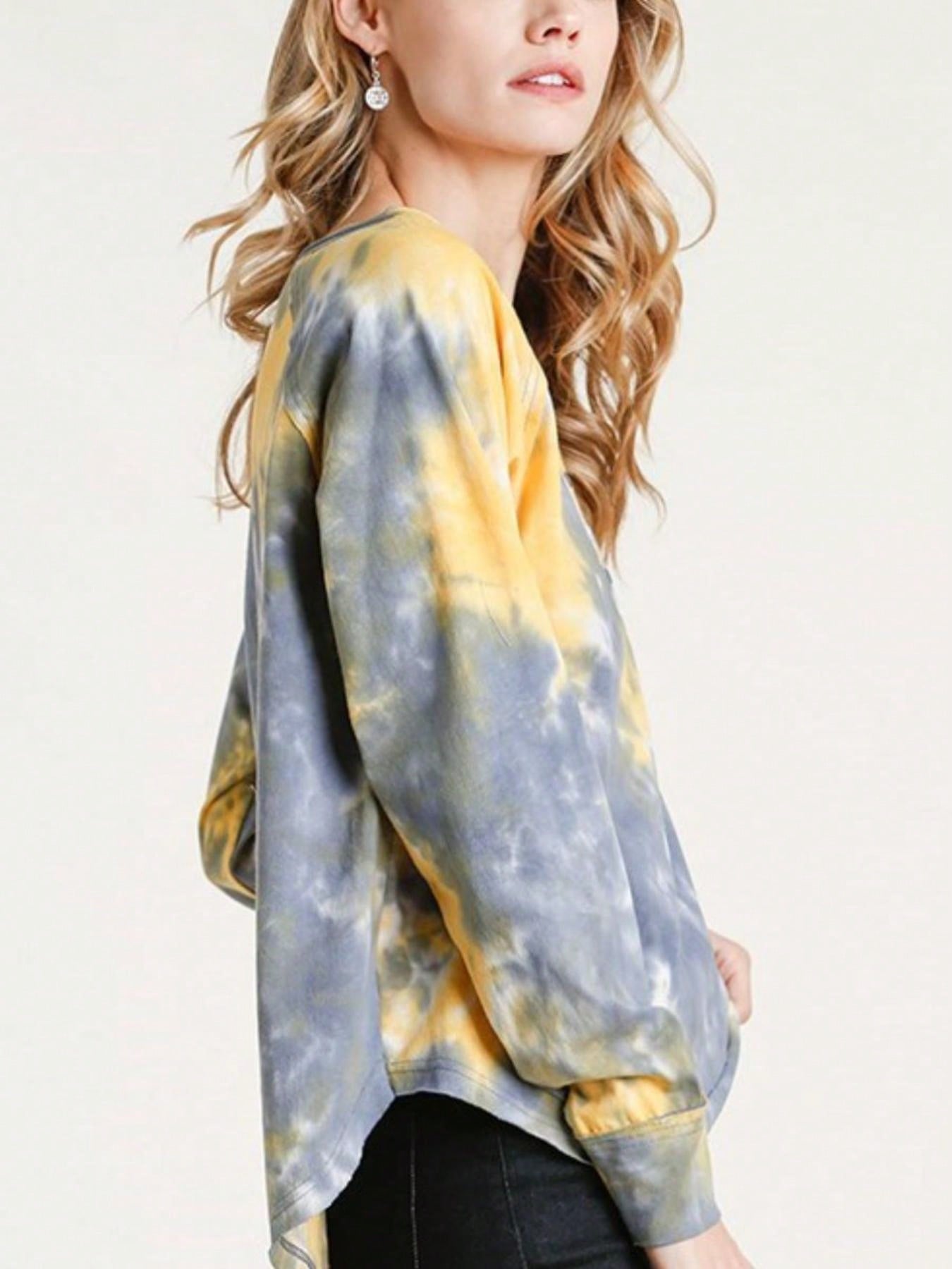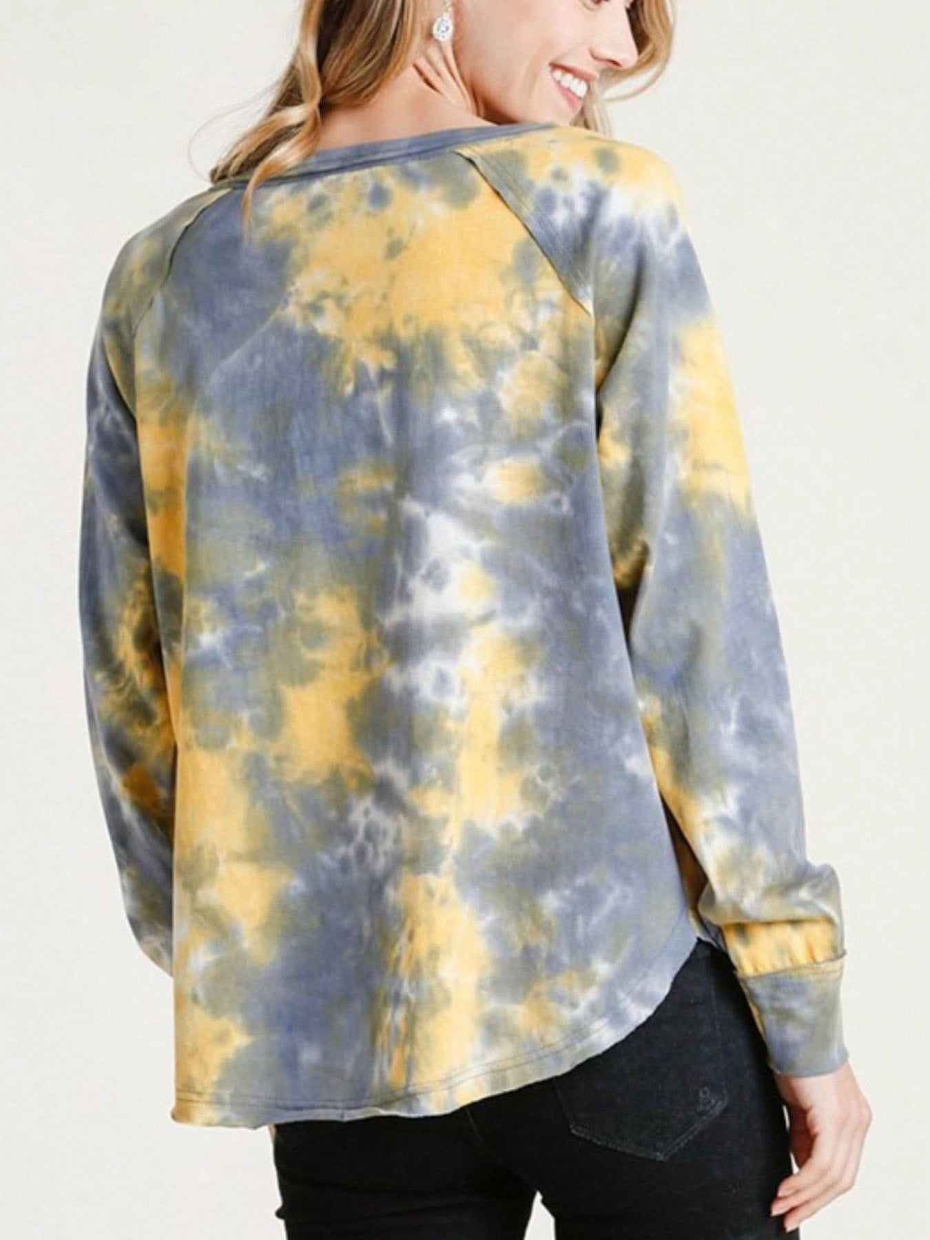 The Tie Dye Button Front Long Raglan Sleeve Top is a stylish and casual top that offers a laid-back vibe. This top features a tie-dye pattern. button-front detailing. and long raglan sleeves for a comfortable fit. Perfect for a relaxed day out or lounging at home. this top adds a fun and fashionable element to your everyday look.