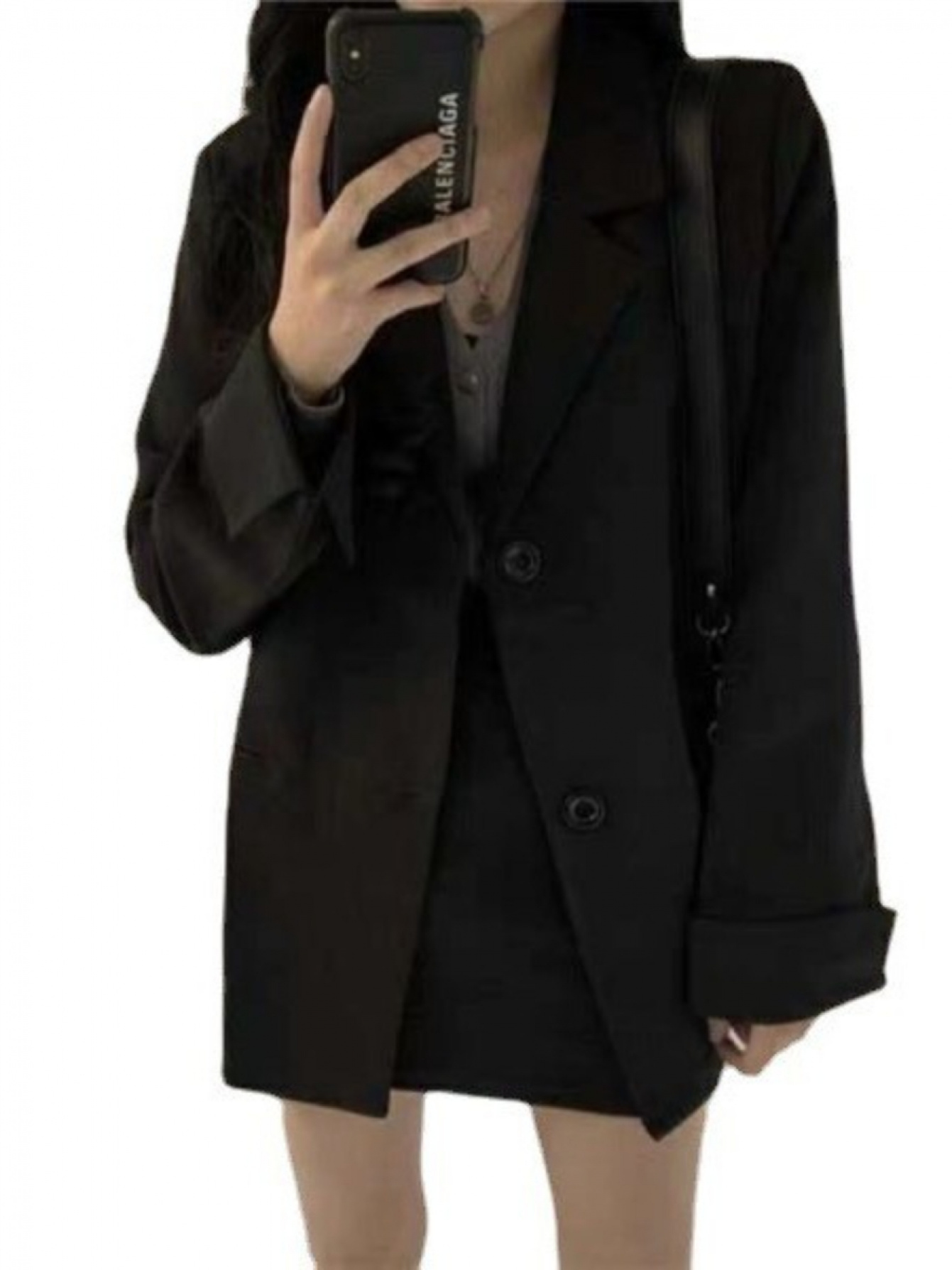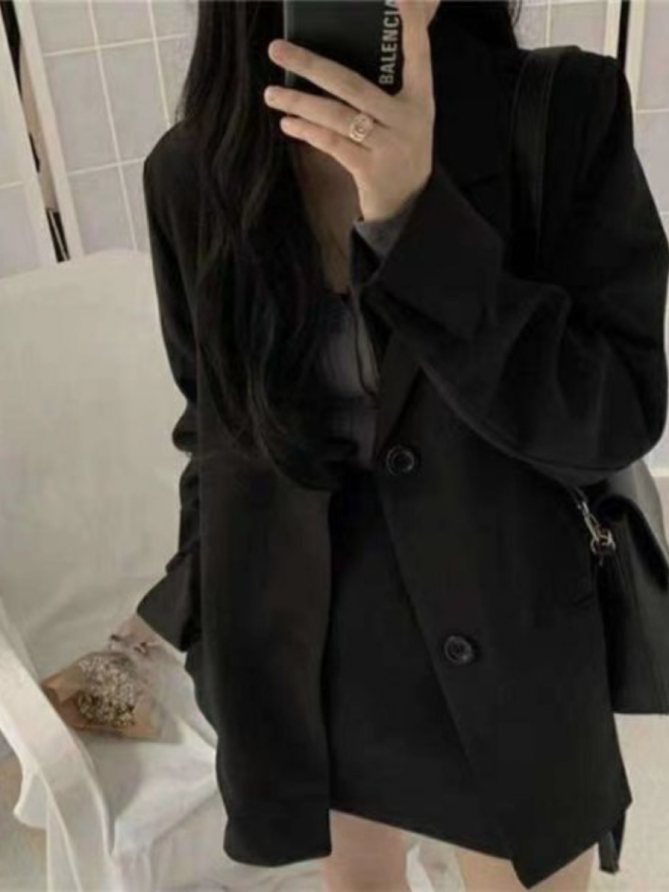 Women’s Classic Long Black Blazer – Elegant Business & Casual Jacket, Structured Fit with Button Front Closure, All-Season Professional Outerwear for Office, Formal Events & Everyday Chic – Machine Washable Women’s Blazer, Sophisticated Texture