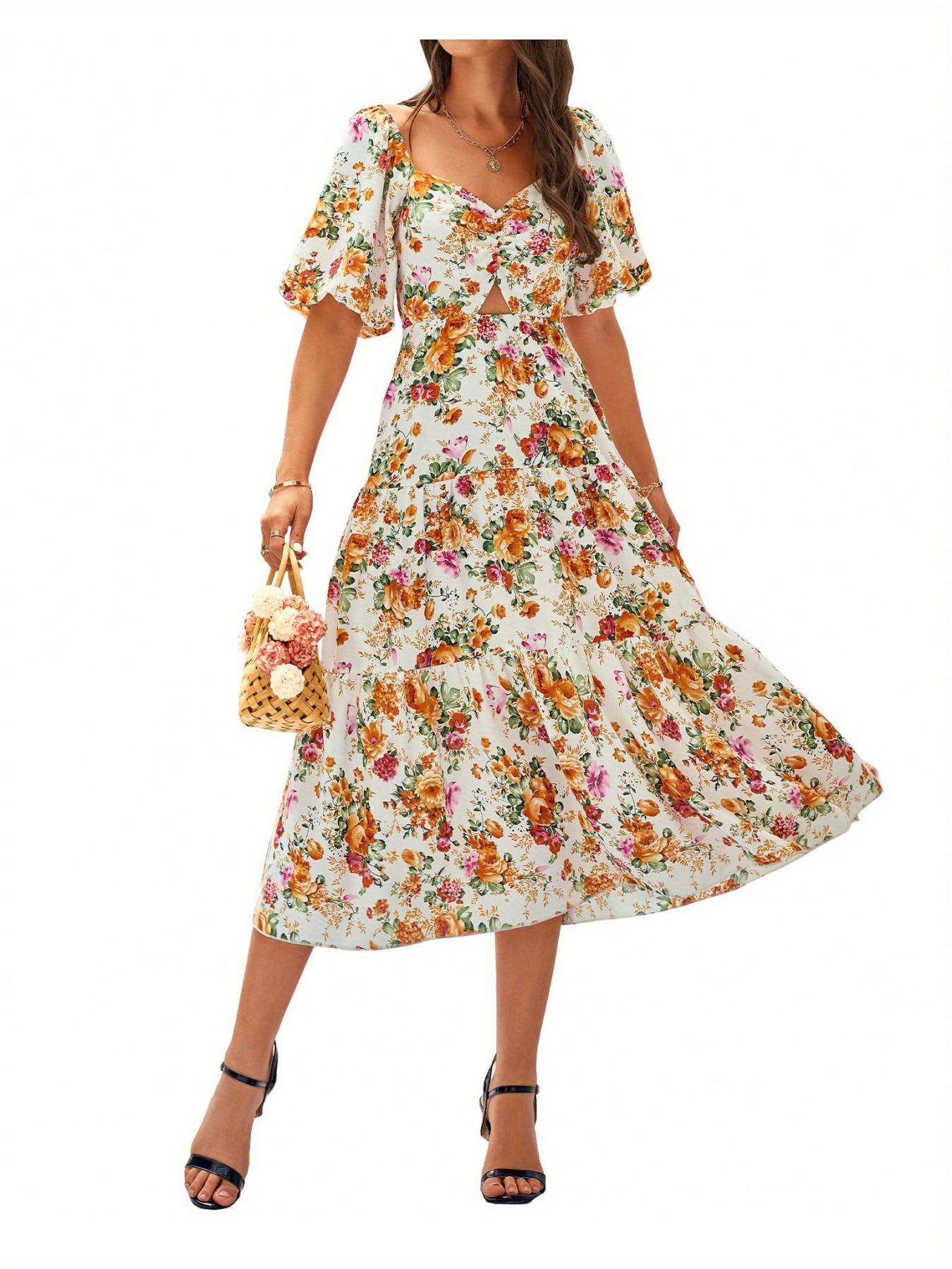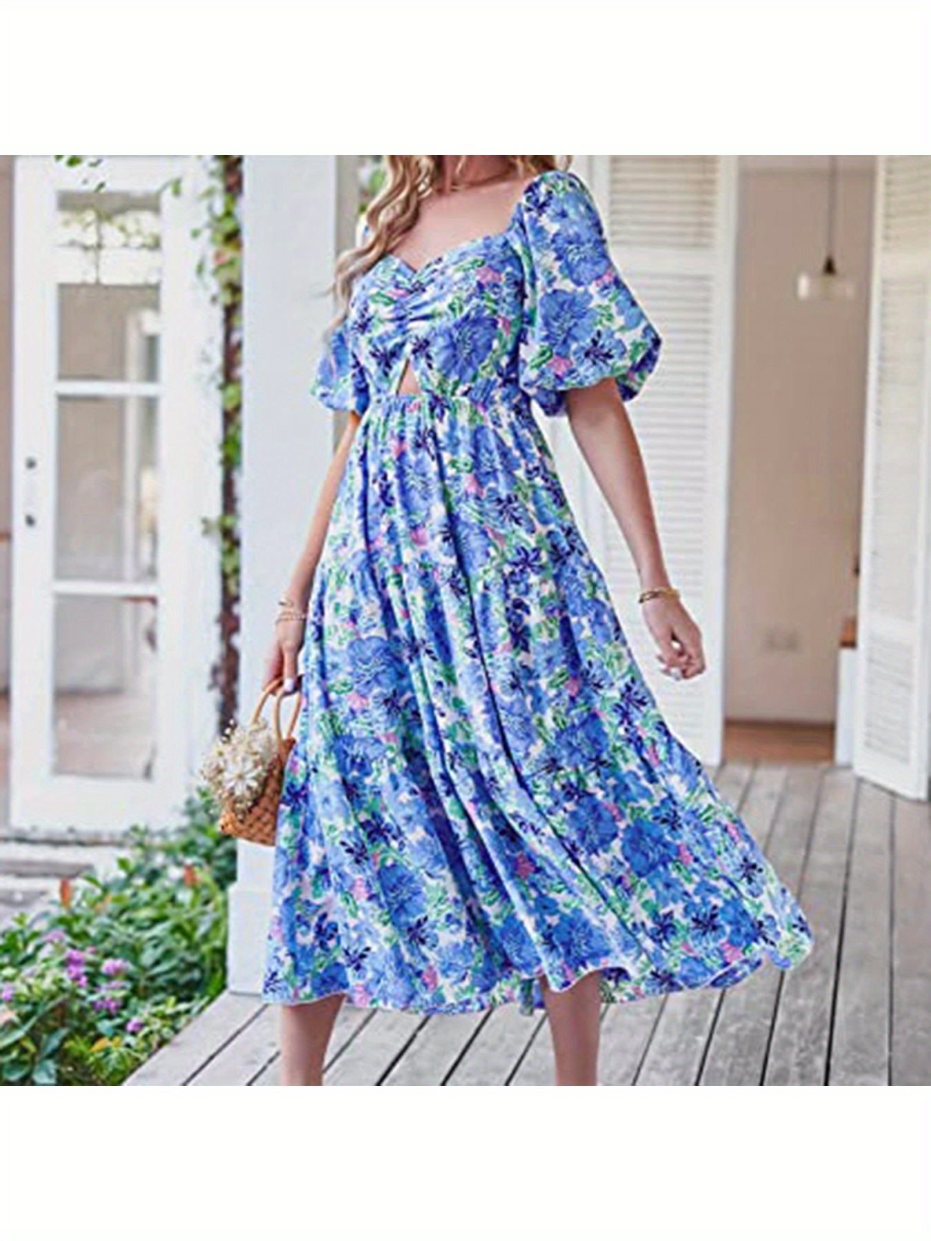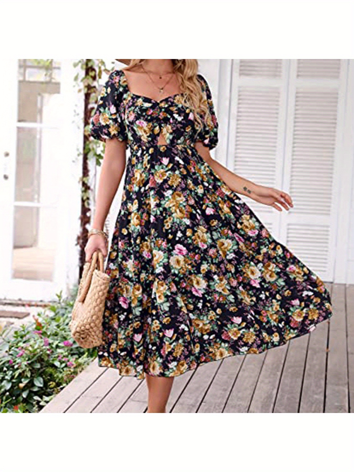 Women’s Elegant Bohemian Floral-like digital print A-Line flared mid-high waistdress – flared hem, for Beach, Party, Everyday – Springu002FSummer Outfits, Party Outfit, Vneck Design, Lightweight Fabric, Versatile Clothing, Summer Wardrobe