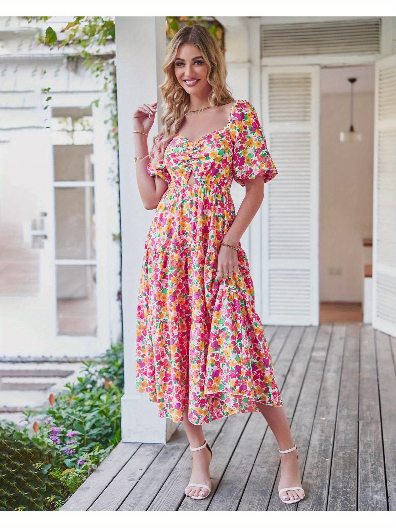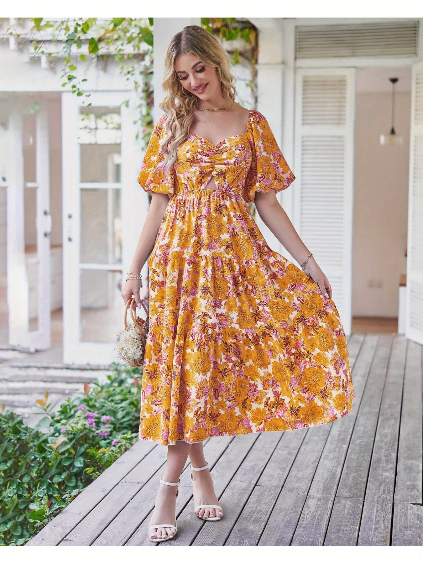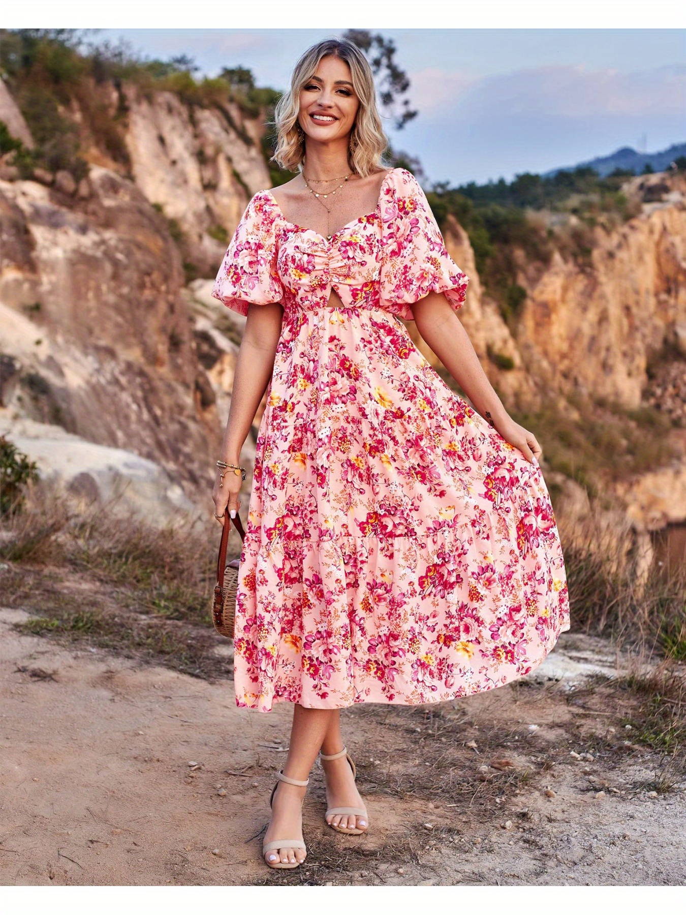 Women’s Elegant Bohemian Floral-like digital print A-Line flared mid-high waistdress – flared hem, for Beach, Party, Everyday – Springu002FSummer Outfits, Party Outfit, Vneck Design, Lightweight Fabric, Versatile Clothing, Summer Wardrobe