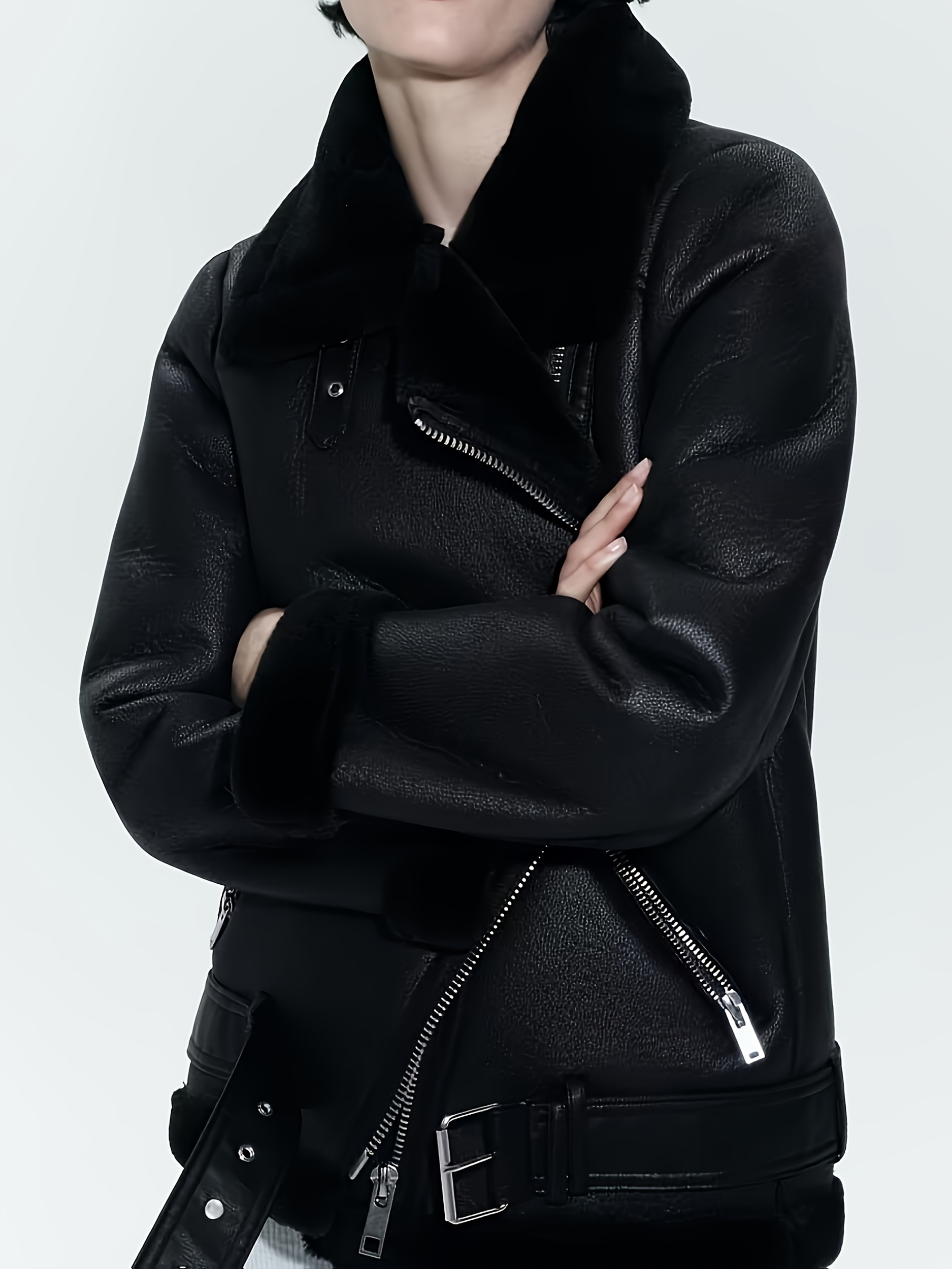 Women’s Elegant Motorcycle Jacket – Zippered Front Closure, Non-Stretchy Outerwear Coat for Fallu002FWinter, Chic Cold Weather Jacket for Everyday & Formal Events