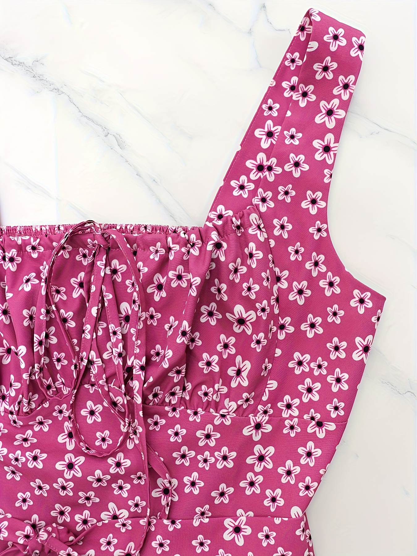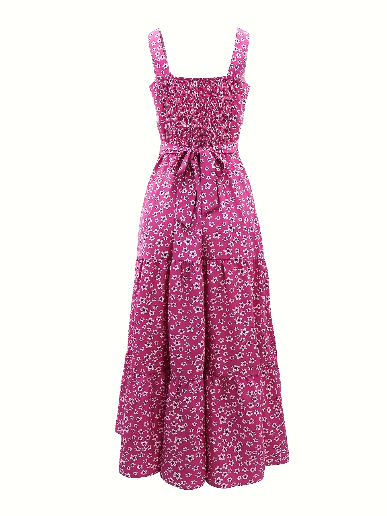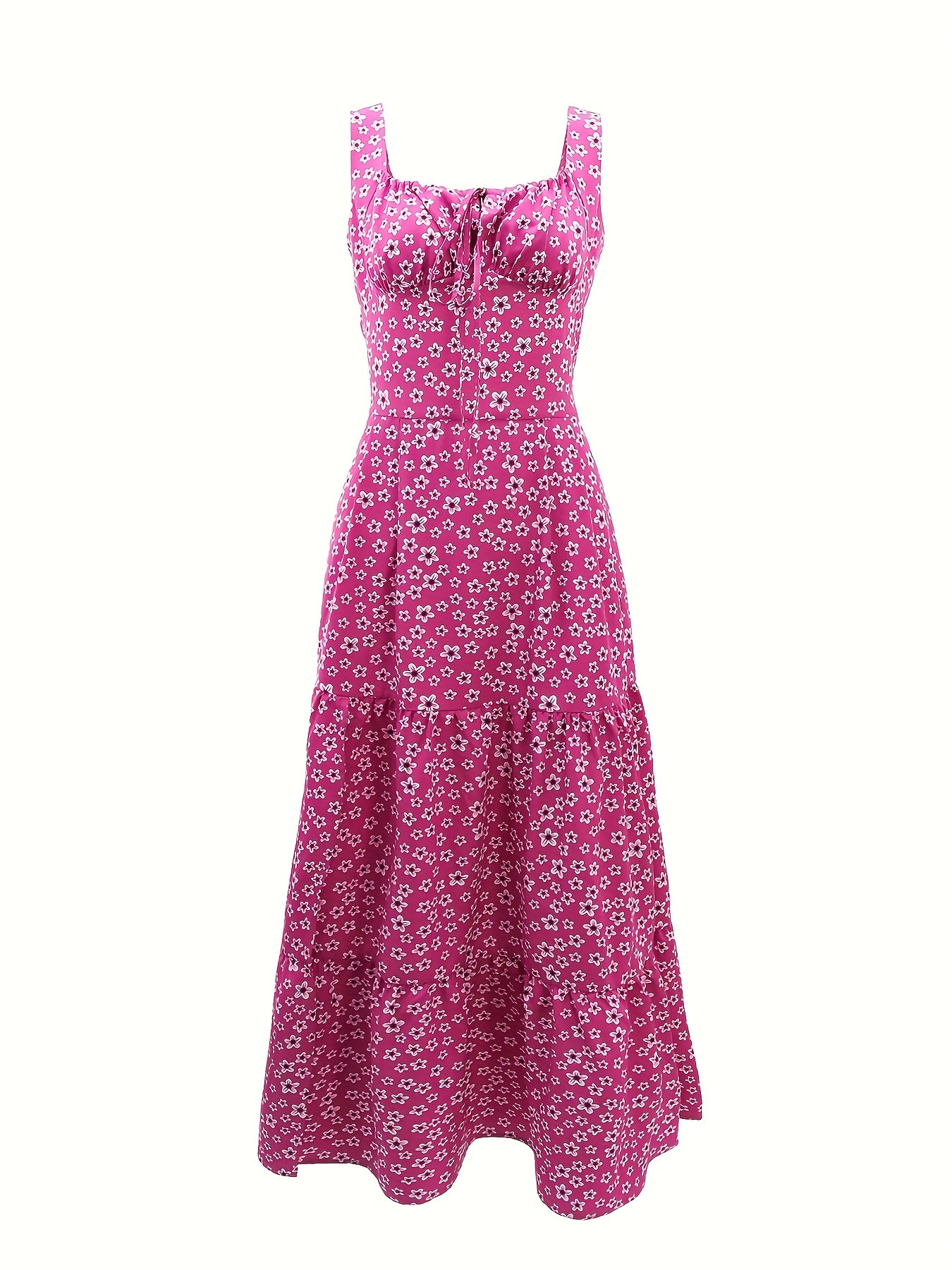 Women’s Floral Print Maxi Dress with Adjustable Drawstring Waist – Square Neck A-Line Lightweight Breathable Fabric for Springu002FSummer Vacation & Casual Outfits, Cute Summer Dresses, Summer Fashion, Flowy Material