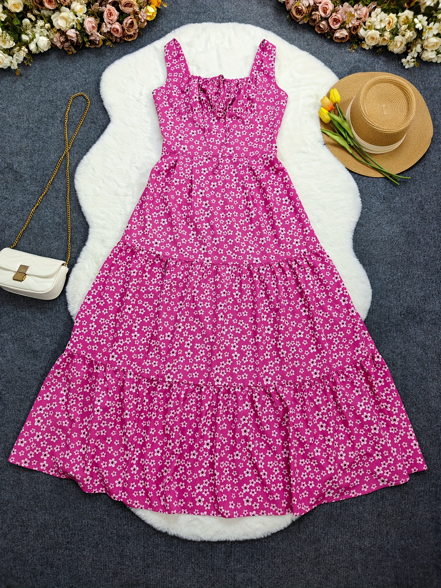 Be the first to review “Women’s Floral Print Maxi Dress with Adjustable Drawstring Waist – Square Neck A-Line Lightweight Breathable Fabric for Springu002FSummer Vacation & Casual Outfits, Cute Summer Dresses, Summer Fashion, Flowy Material”