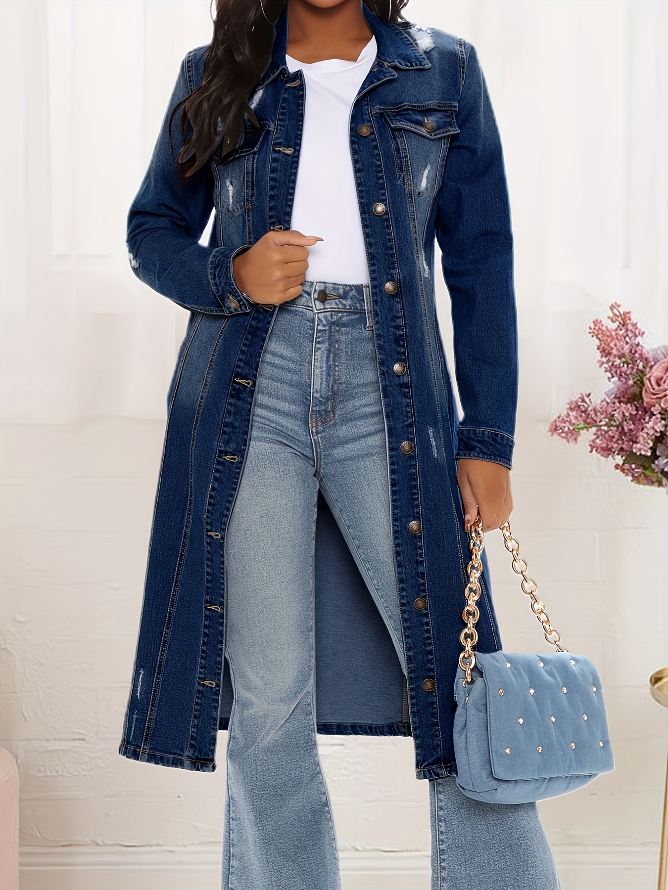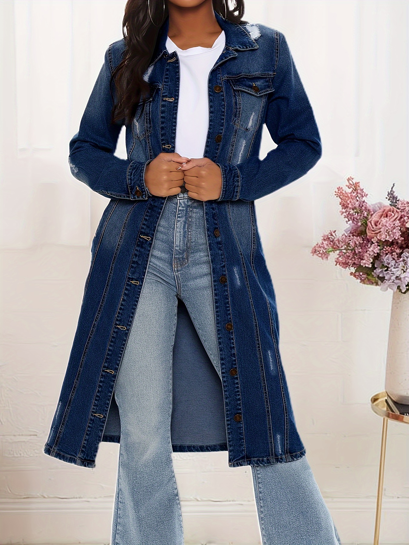 Be the first to review “Women’s Lapel Button Vintage Slim Denim Long Jacket”
