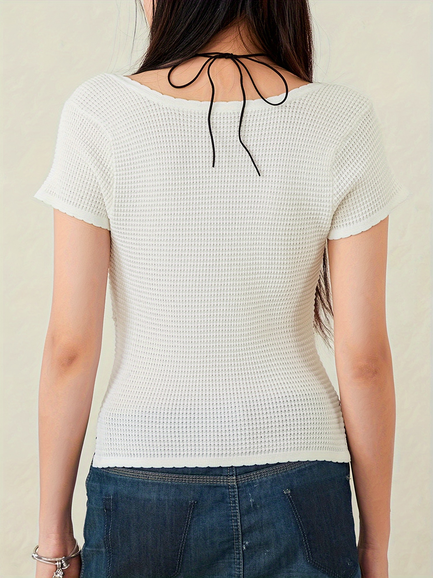 Be the first to review “Women’S Summer Slim Crop Tops White Short Sleeve V Neck Side Split Short T-shirt”