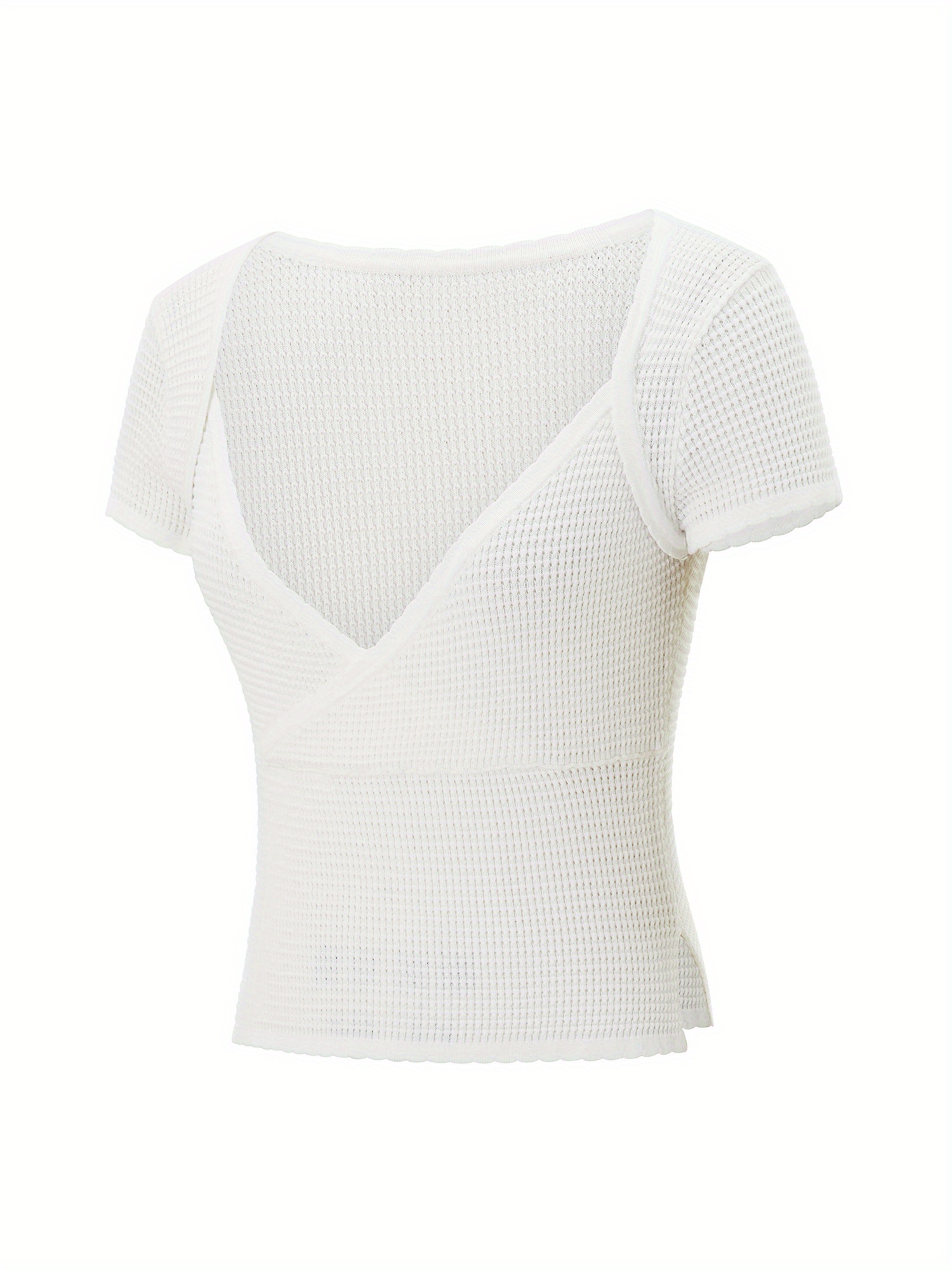 Women’S Summer Slim Crop Tops White Short Sleeve V Neck Side Split Short T-shirt