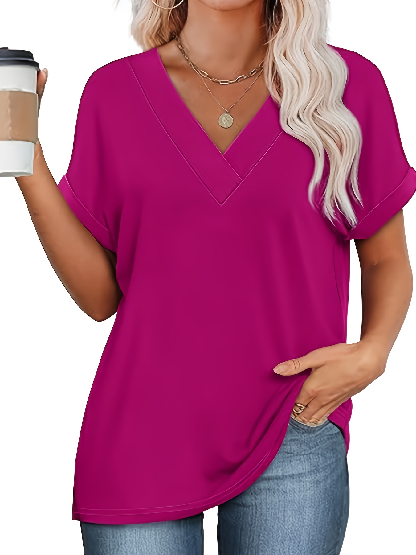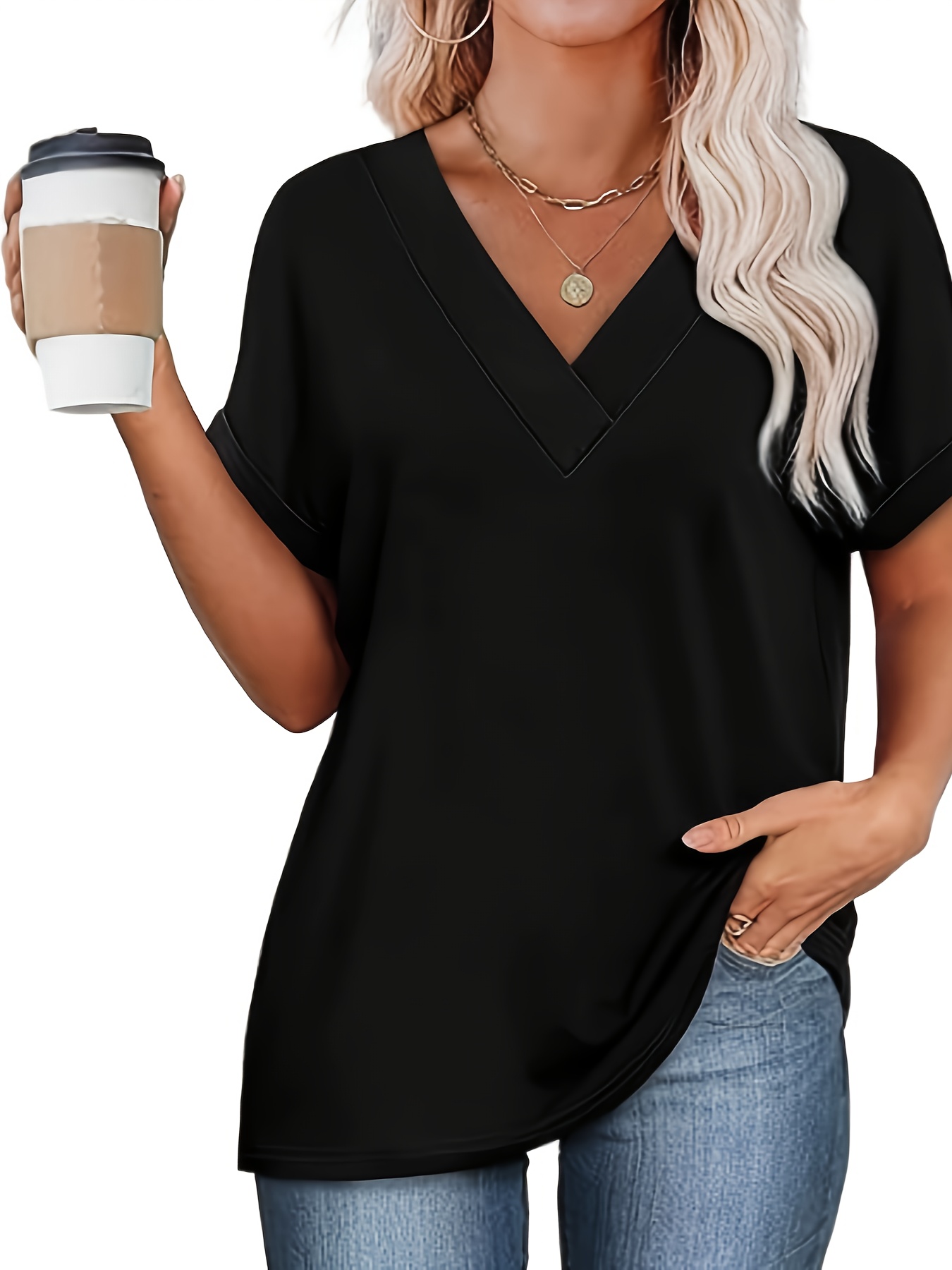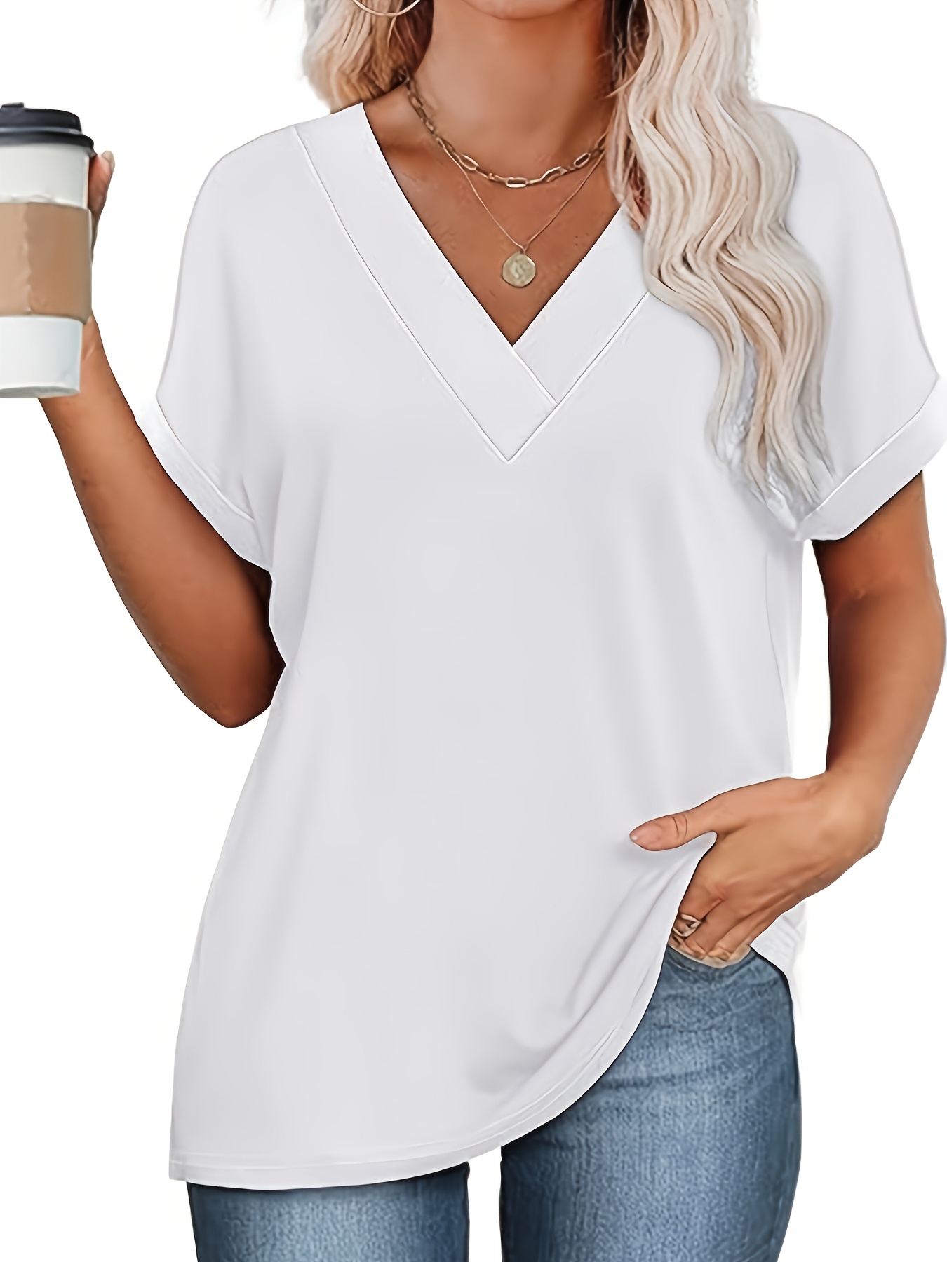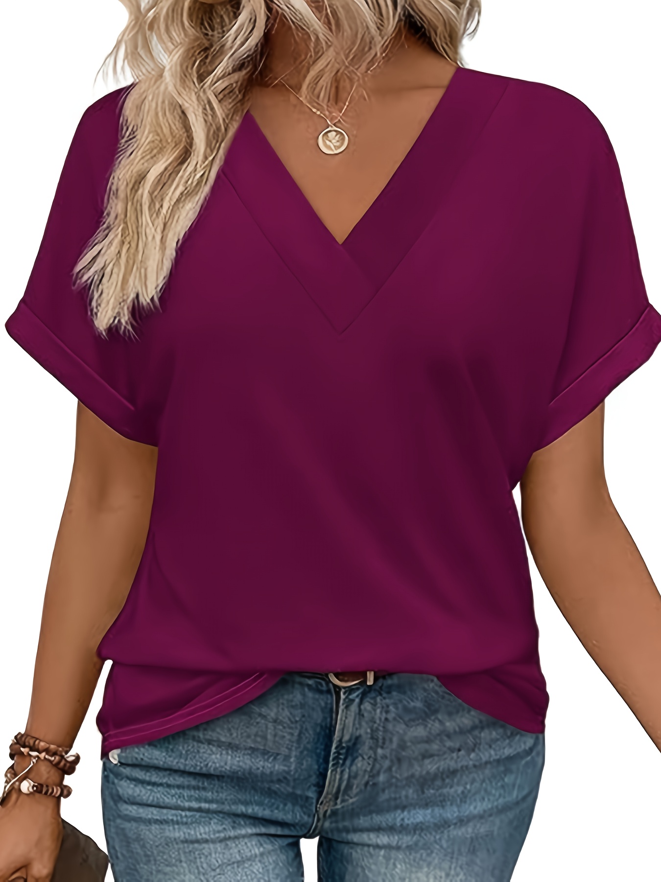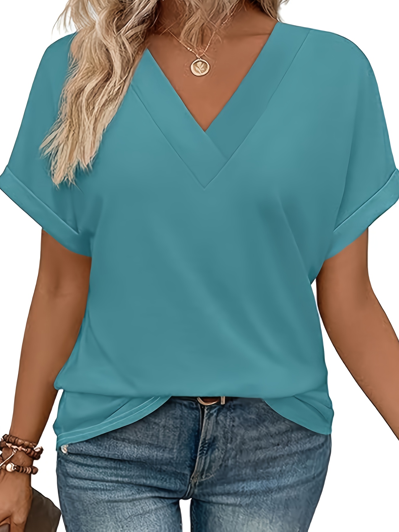 Women’S Tops Short Bat Sleeve Shirt Fashionable V-neck Clothing, Casual And Versatile