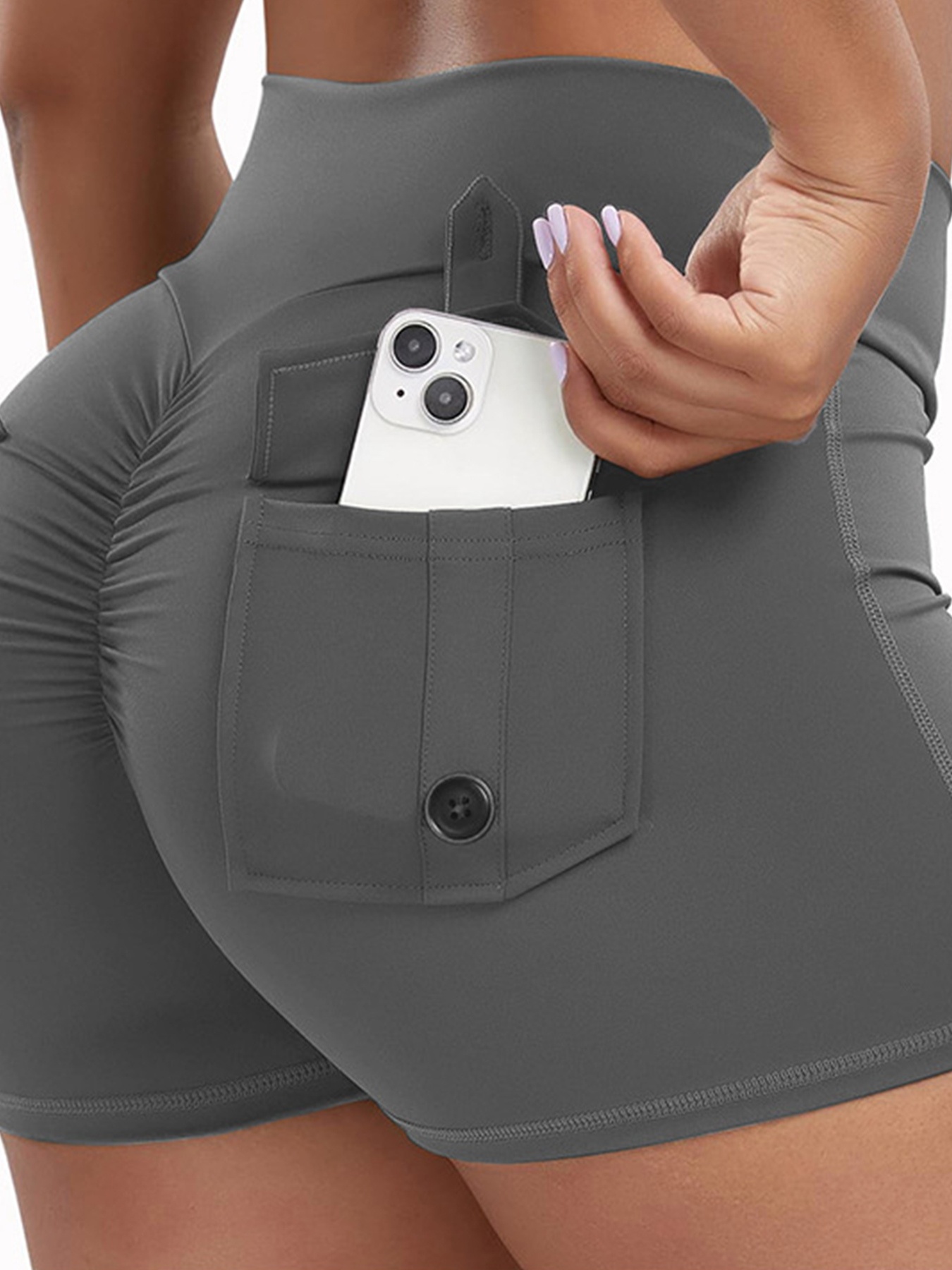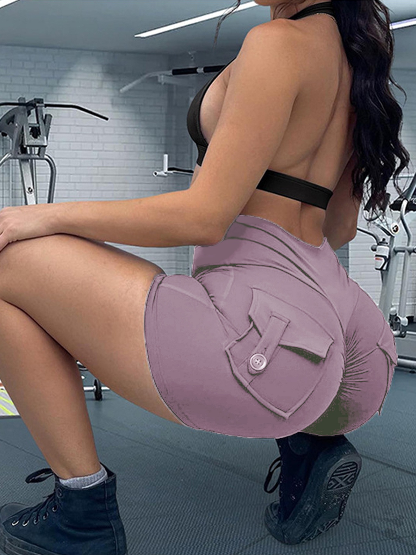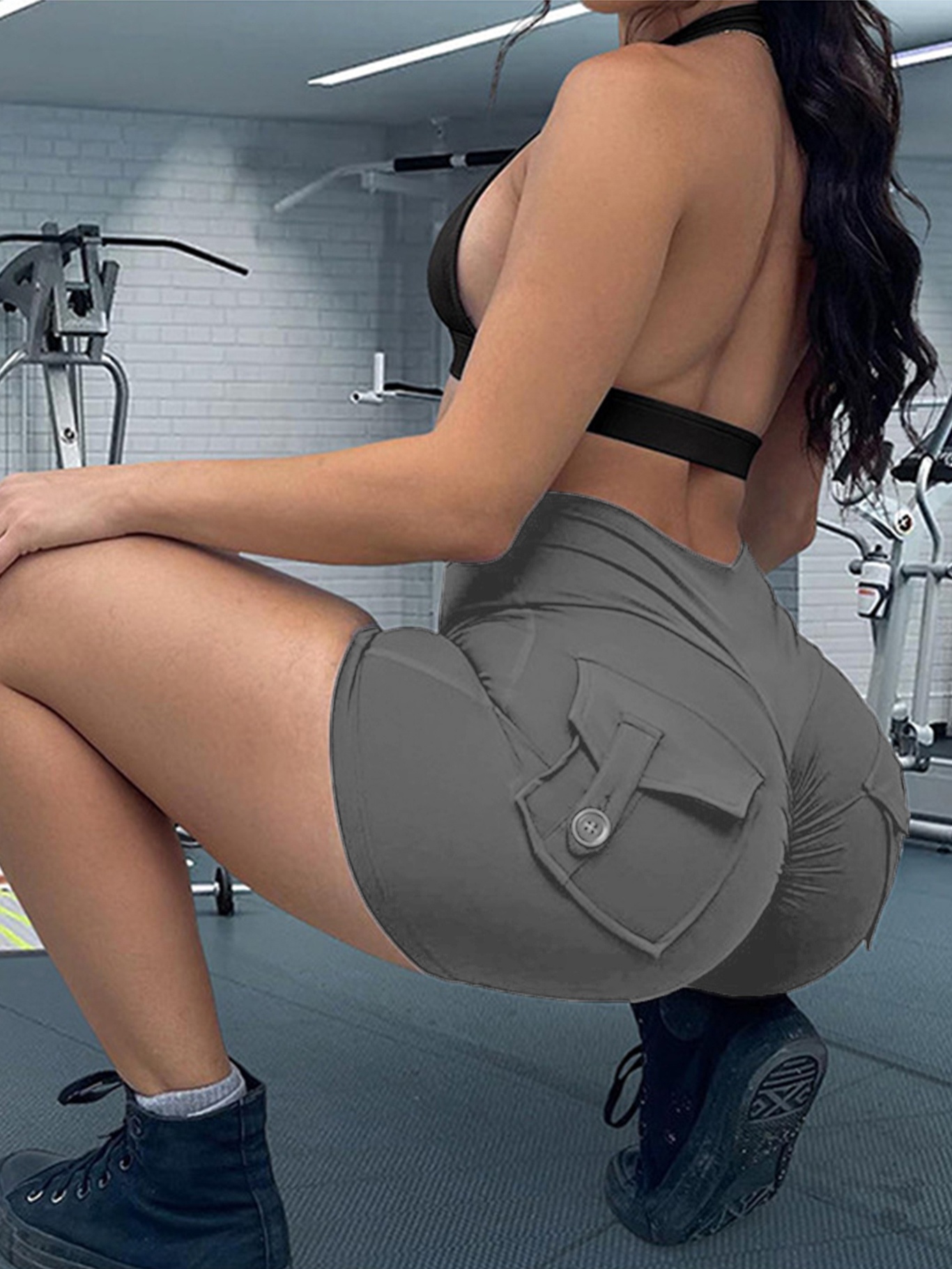 Women’S Yoga Shorts Solid Color High Waisted Short Pants Tummy Control Workout Cycling Pants with Pockets