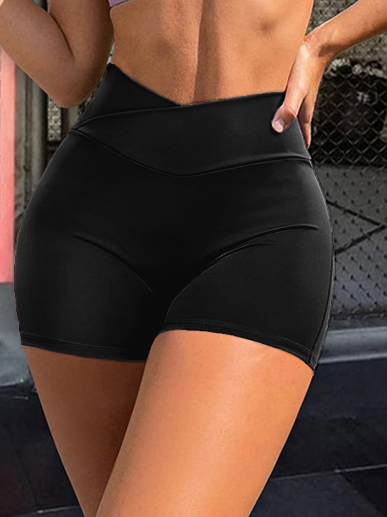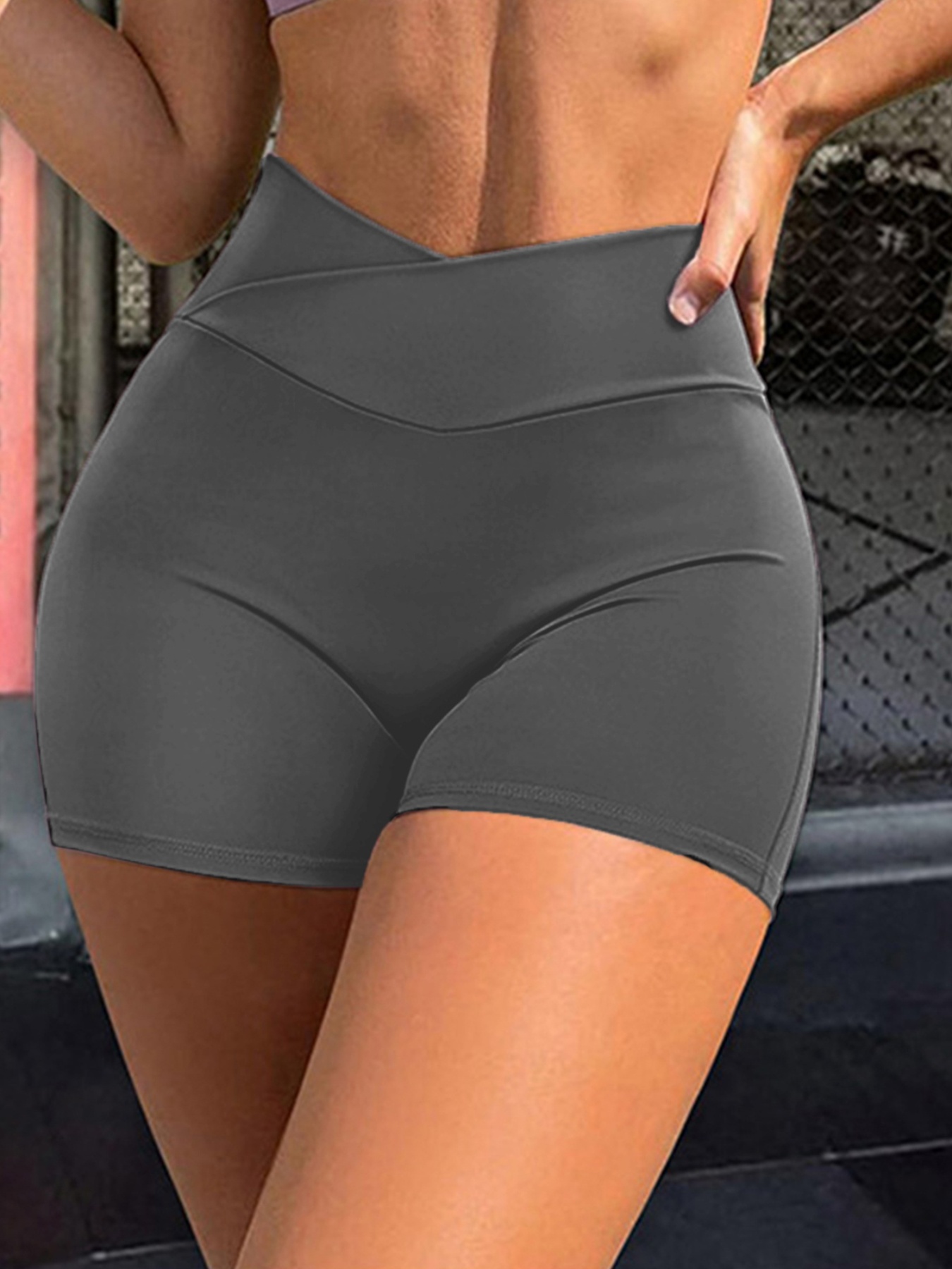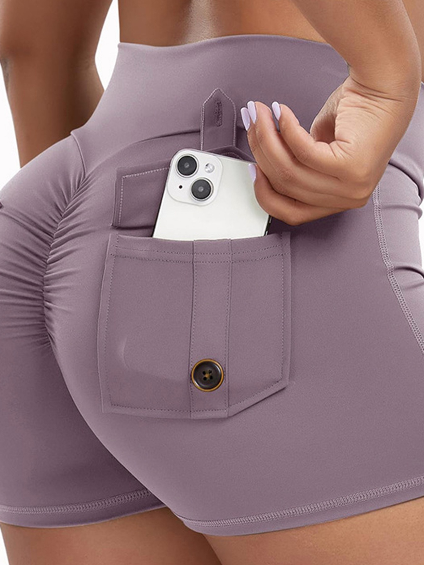 Women’S Yoga Shorts Solid Color High Waisted Short Pants Tummy Control Workout Cycling Pants with Pockets